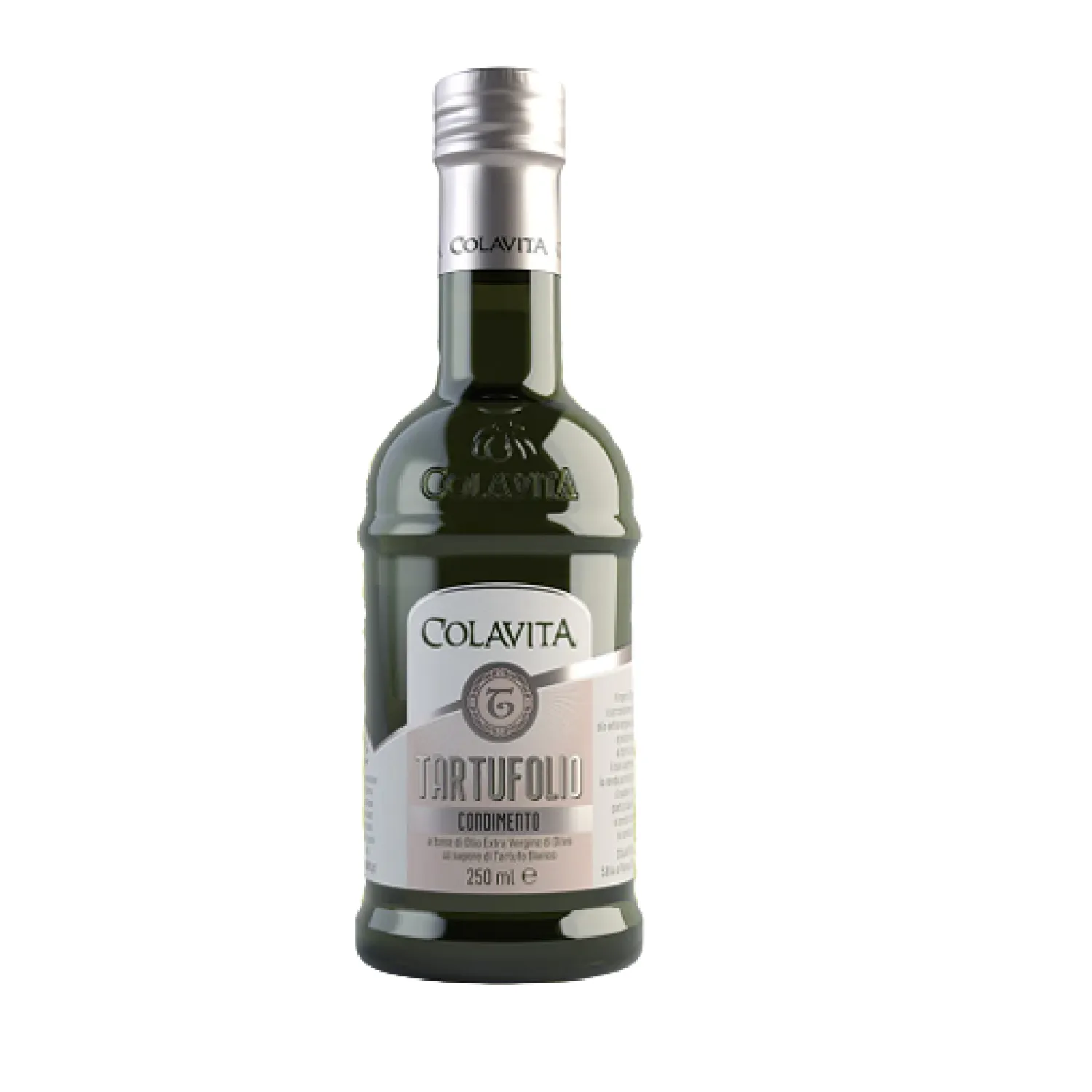 Colavita Tartufolio je prémiové dochucovadlo na báze extra panenského olivového oleja s jemnou, no výraznou arómou bielej hľuzovky. Tento vzácny olej v sebe spája to najlepšie z talianskej prírody – kvalitné olivy lisované za studena a delikátnu chuť hľuzovky, ktoré sú považované za klenot medzi pochúťkami.
