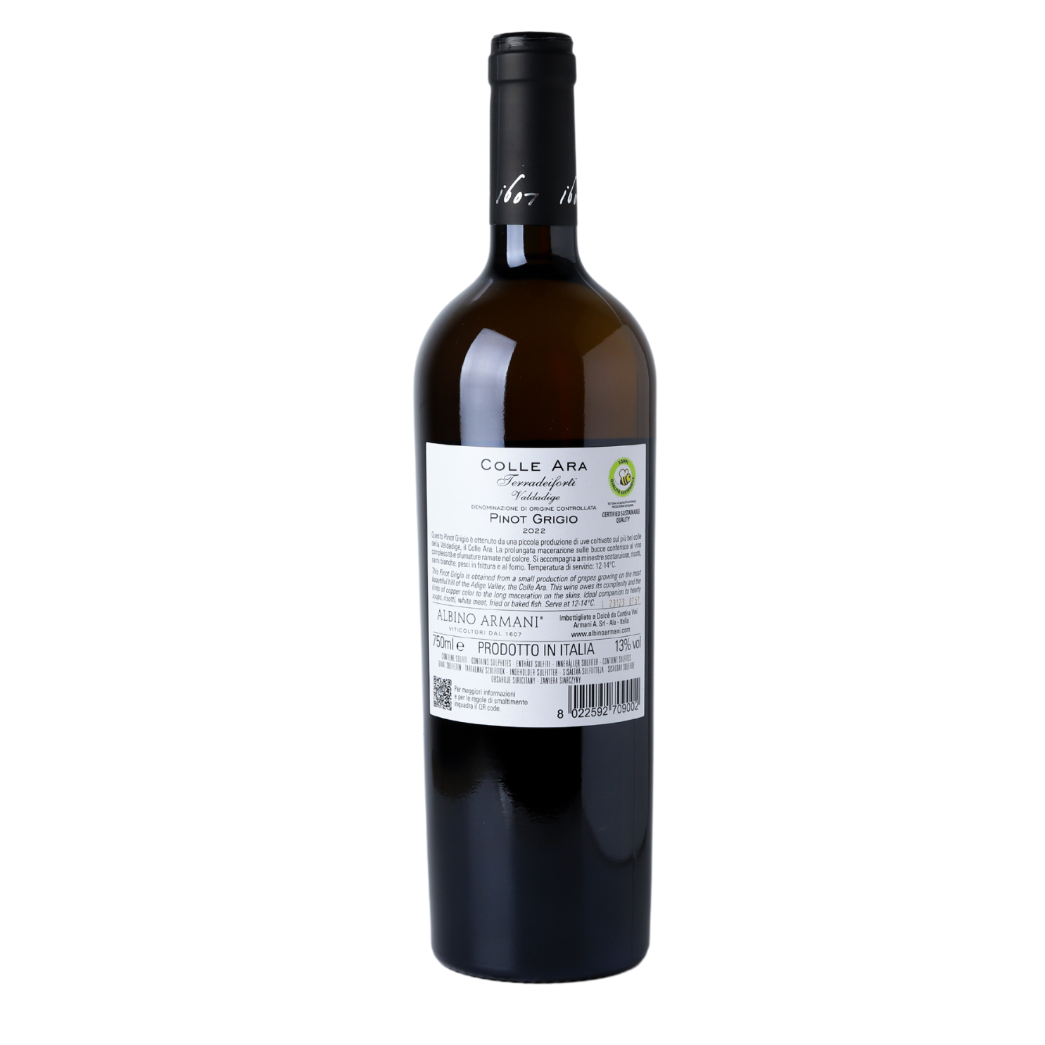 Predstavujeme Vám suché biele víno ALBINO ARMANI Pinot Grigio Colle Ara pochádzajúce z Valdadige v regióne Veneto, kde sa podnebie vyznačuje intenzívnymi teplotnými zmenami a neustálym vetrom. Vďaka týmto priaznivým podmienkam je táto oblasť ideálna na pestovanie odrody hrozna Pinot Grigio, z ktorej je víno vyrobené.