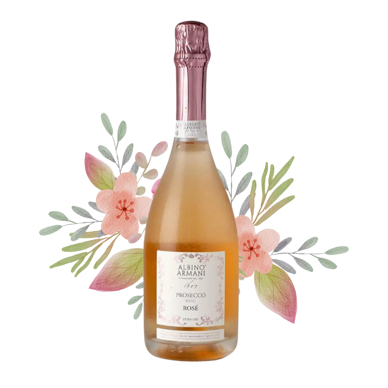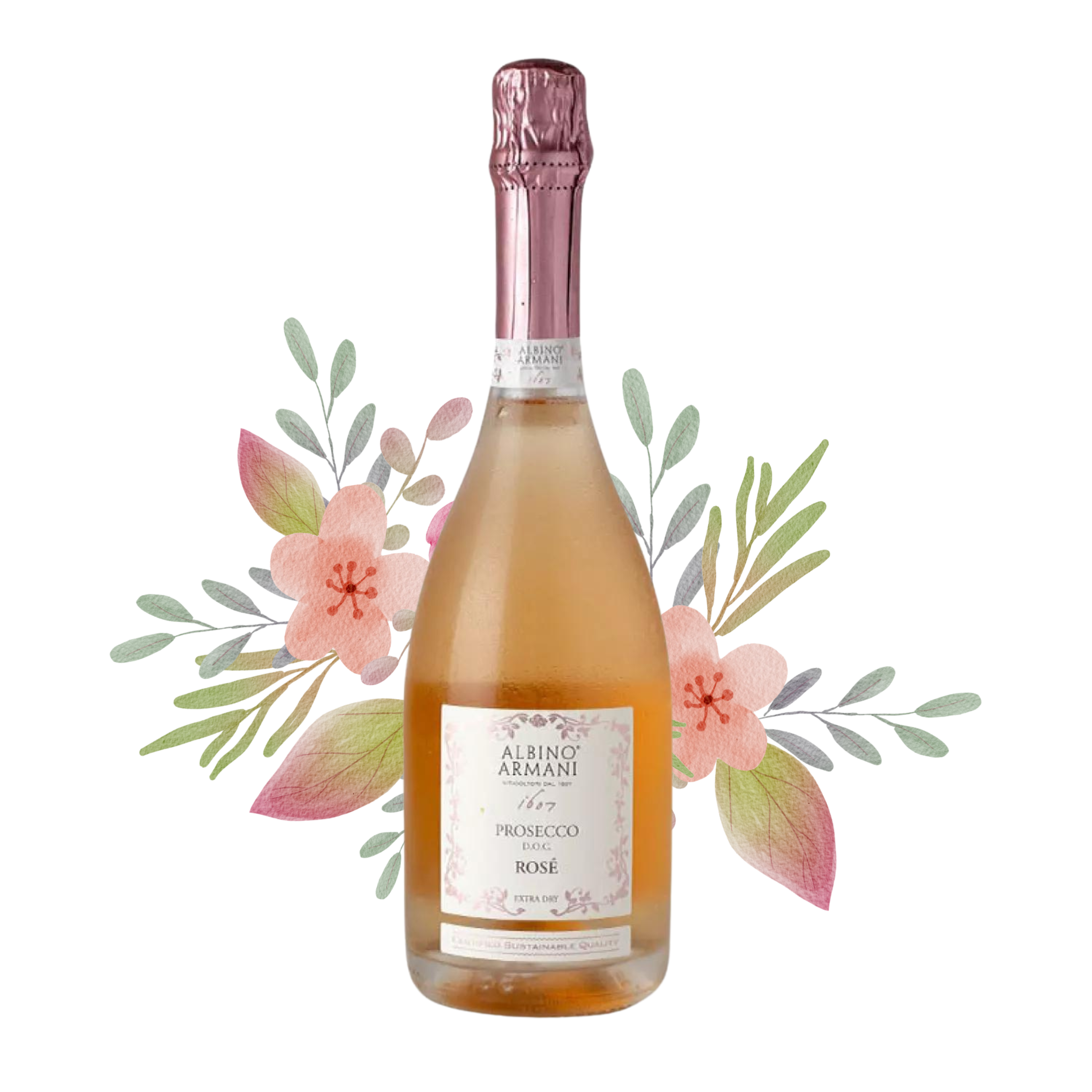 Predstavujeme Vám šumivé víno ALBINO ARMANI Prosecco Rosé, ktoré Vás zavedie priamo do srdca talianskych vinohradov. Prosecco Rosé sa vyrába z hrozna odrody Glera (90%), neodmysliteľnej pri výrobe šumivého vína a z odrody hrozna Pinot Nero (10%). Tento mix odrôd vytvára kvalitné víno ohromujúcej chuti. Odroda Pinot Nero dáva vínu rafinovanú ružovú farbu, ako aj štruktúrovanejšiu a komplexnejšiu perleť. Akonáhle je cuvée hotové, prebehne druhá fermentácia v tlakových nádobách po dobu najmenej 60 dní.
