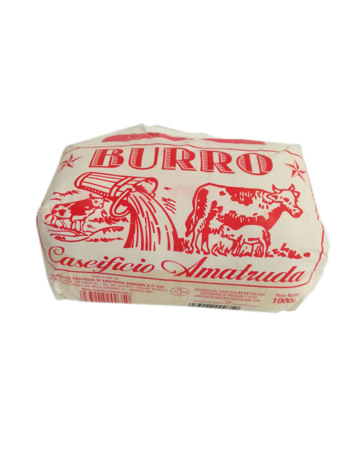 Maslo Caseificio Amatruda v 1 kg balení je tradičné talianske maslo vyrobené zo smotany z kravského mlieka s obsahom tuku minimálne 82 %, čo mu zabezpečuje pevnú, kompaktnú konzistenciu a čistú, prirodzenú chuť Zobraziť celý popis