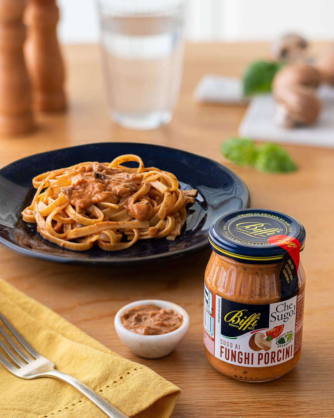 Biffi hubová omáčka s hríbmi porcini je hotová paradajkovo-hubová omáčka určená na rýchlu a jednoduchú prípravu jedál. Základ tvorí paradajkový… Zobraziť celý popis