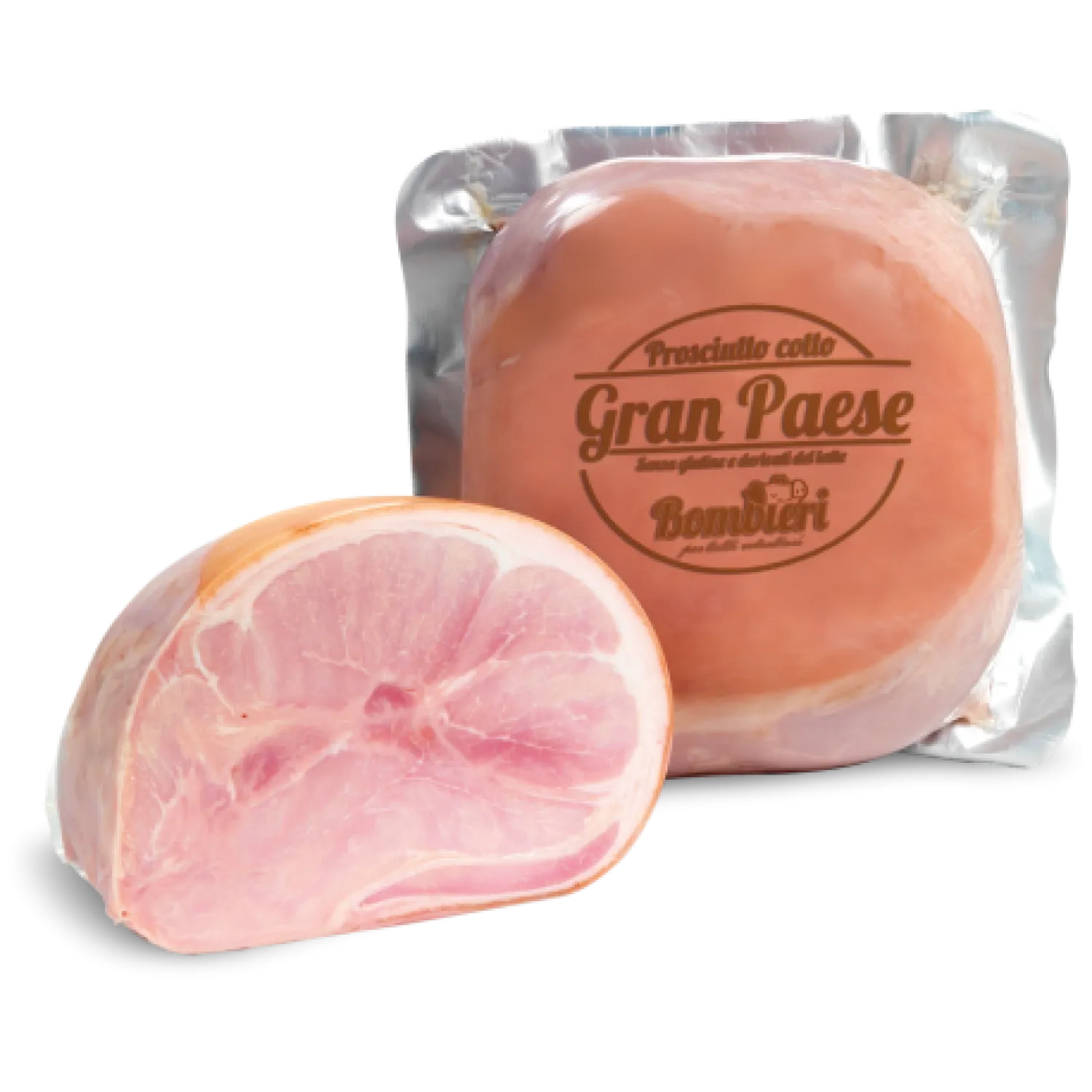 Bombieri Prosciutto Cotto Gran Paese je delikátna šunka najvyššej kvality, vyrobená podľa tradičnej talianskej receptúry. Svojou šťavnatosťou, jemnou chuťou a harmonickou arómou osloví aj tých najnáročnejších gurmánov. Vďaka starostlivému výberu mäsa a pomalému vareniu dosahuje produkt ideálnu rovnováhu medzi prirodzenou chuťou a jemnou štruktúrou.
