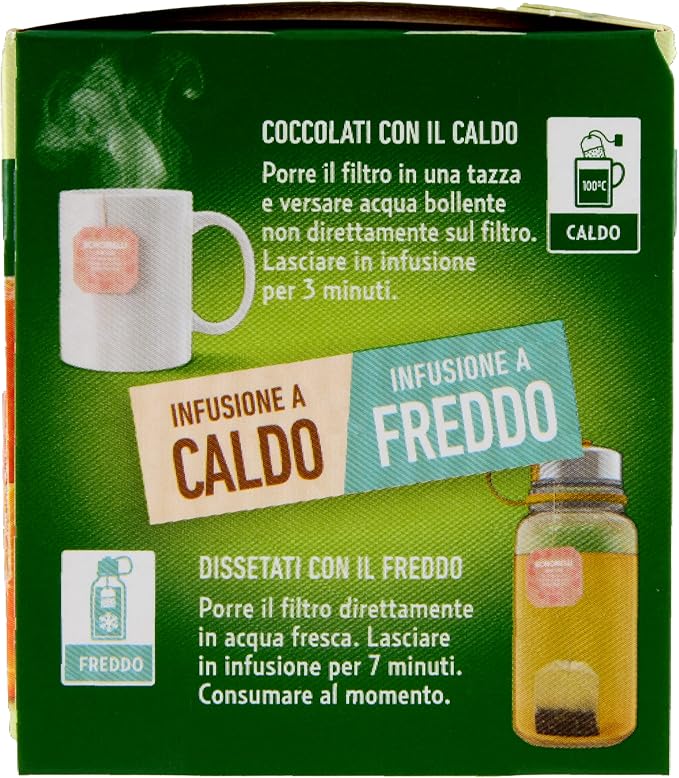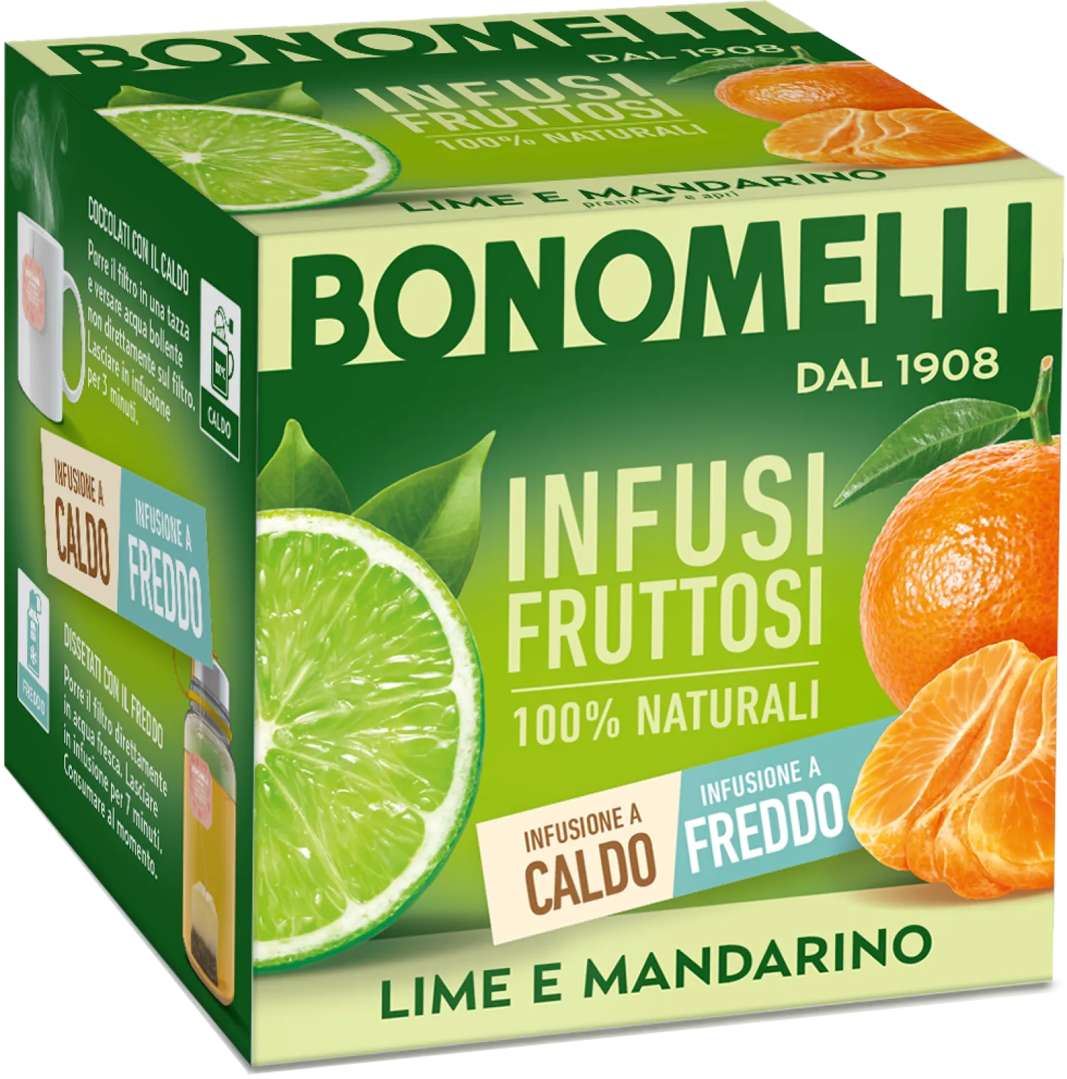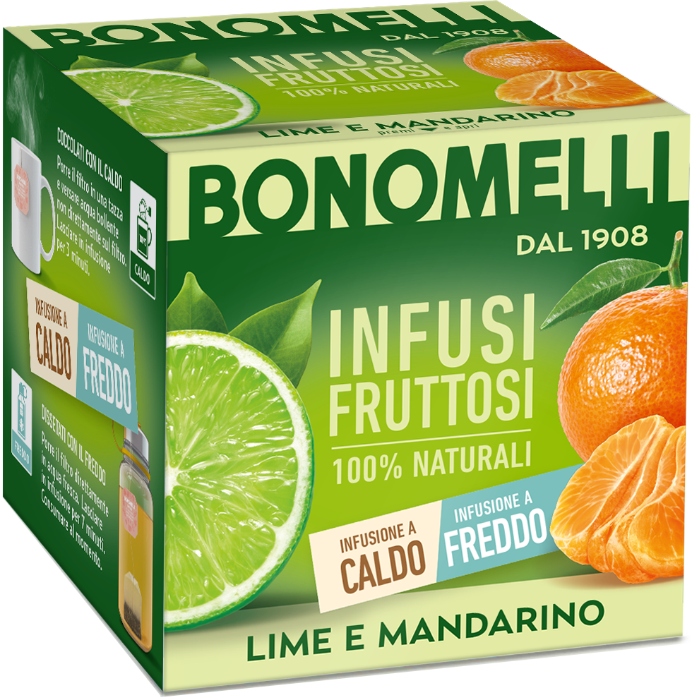 Čaj Bonomelli limetka a mandarínka chutí výborne teplý i studený, ako osviežujúci nápoj v letných dňoch. Jeho citrusová kombinácia prináša do každej šálky žiarivú sviežosť a prirodzenú ľahkosť, ktorú si zamilujete už po prvom dúšku.