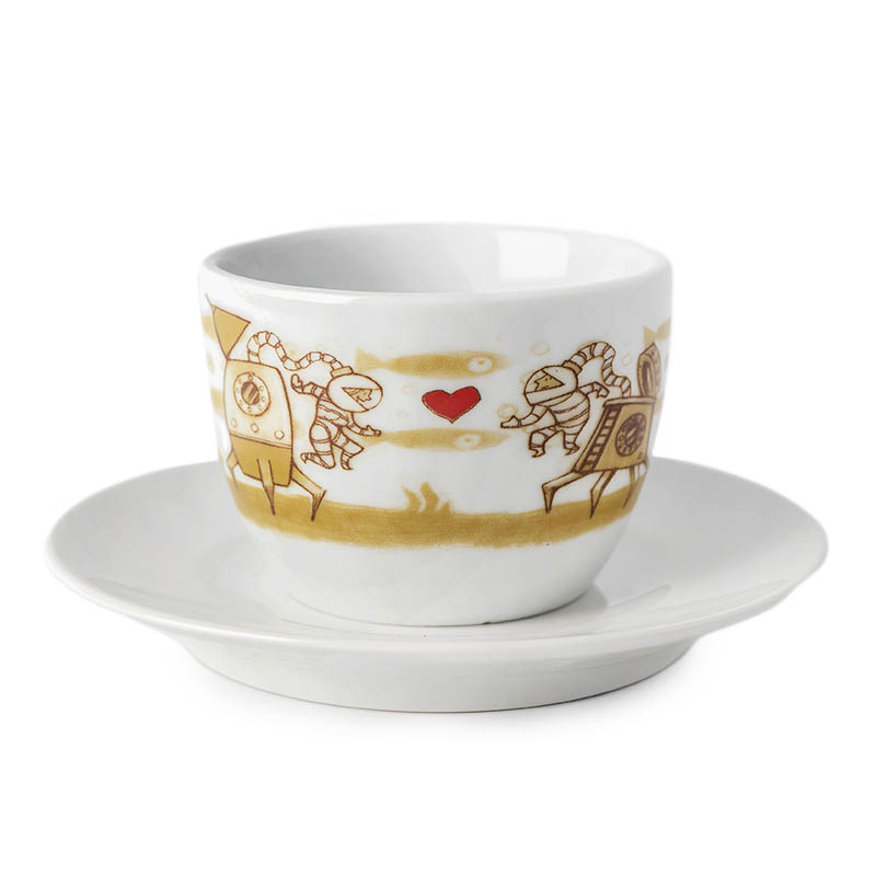 Porcelánové šálky na kávu od rodinnej firmy Caffé Diemme, ktorej história siaha až do roku 1927 do Padovy v severnom Taliansku, kde sa osudy dvoch priateľov, Romea Dubbiniho a Maria Malagoliho skrížili práve vášňou pre kávu.