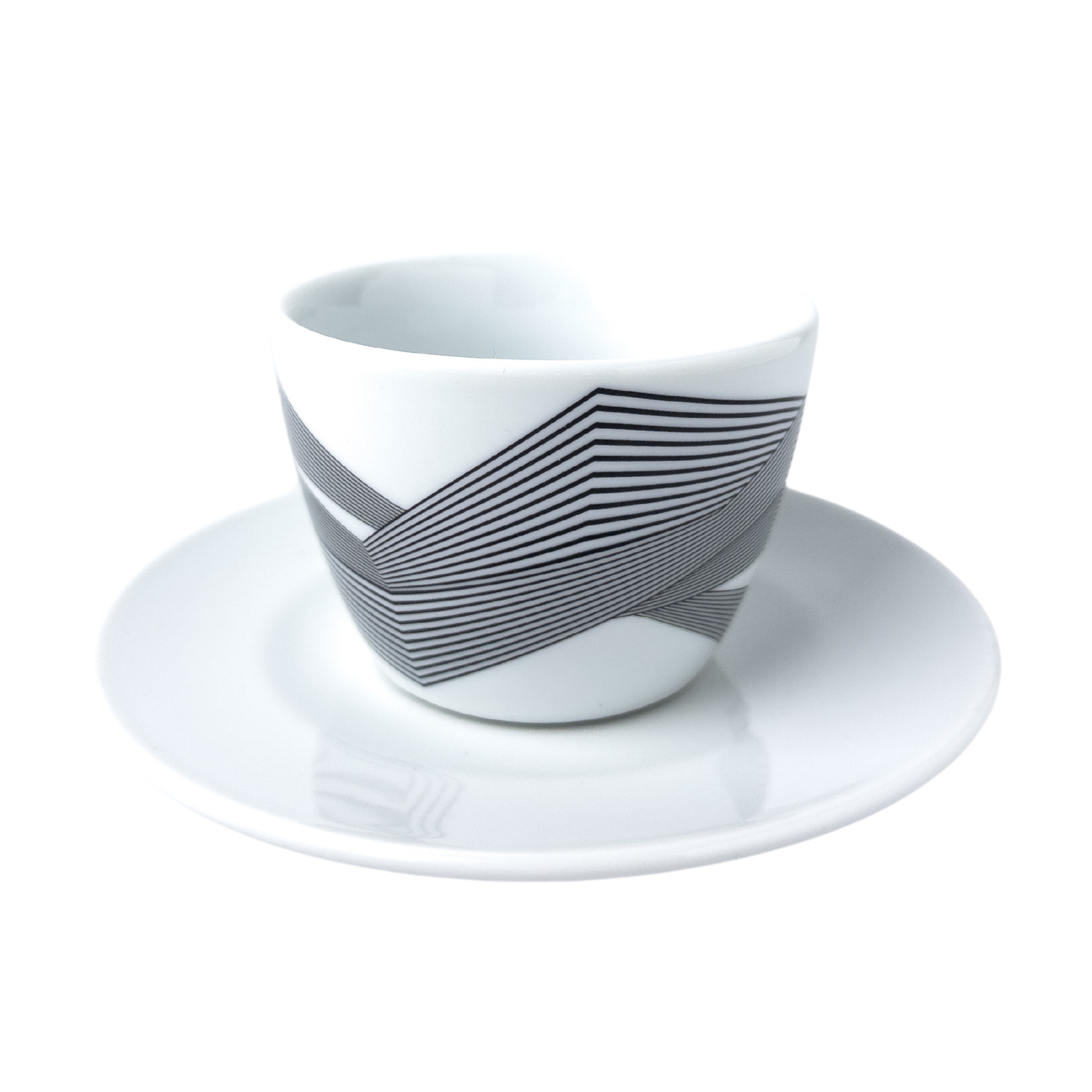 Optical vzor tvorí sústava presných čiernych línií, ktoré sa geometricky prelínajú a vytvárajú pôsobivý optický efekt hĺbky a pohybu. Tento dynamický dizajn zaujme svojou precíznosťou a kontrastom, no zároveň si zachováva čistotu a eleganciu typickú pre taliansky minimalizmus. Každý detail dekoru je aplikovaný s maximálnou presnosťou, aby si šálka zachovala svoj vzhľad aj po dlhodobom používaní. Výsledkom je moderný doplnok, ktorý vynikne v interiéri aj na barovom pulte.