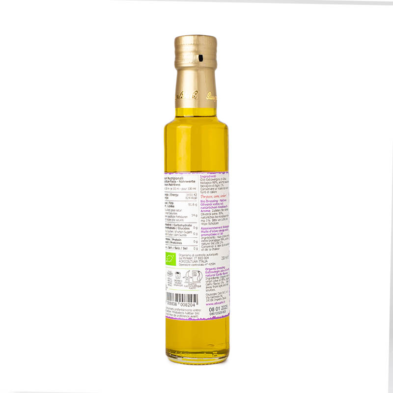 Vstúpte do sveta vôní a chutí, kde Vás okúzli intenzívna esencia cesnaku spojená s jemným tónom olivového oleja. Práve takúto senzáciu ponúka extra panenský olivový olej s príchuťou cesnaku. Tento výrobok, pochádzajúci priamo z Talianska a vyrábaný v súlade s organickými princípmi, je perličkou vo svete gastronómie. Využite príležitosť a pripojte sa k tým, ktorí v kuchyni odhaľujú tajomstvá kulinárskej alchýmie s touto aromatickou delikatesou z nášho sortimentu.