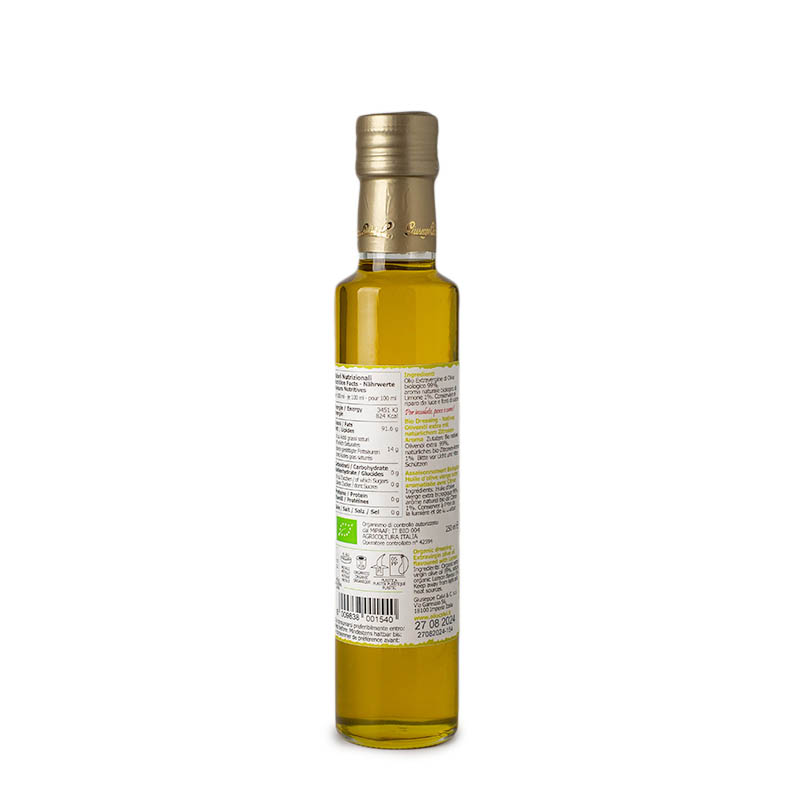 Zloženie: extra panenský olivový olej 99%, citrónová aróma 1%. Olivy lisované za studena.