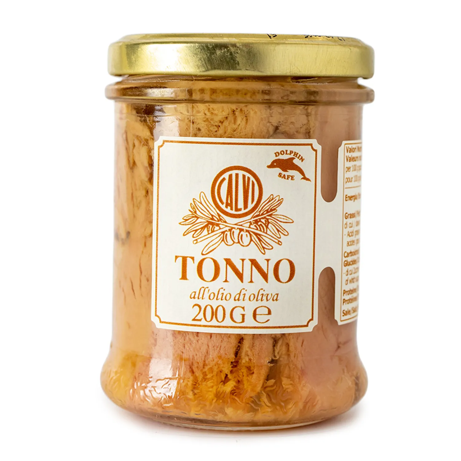 Tuniak v olivovom oleji TONNO AL OLIO DI OLIVA od CALVI je iný než tuniak, akého dostanete inde. Tento lahodný tuniak je namočený v najjemnejšom olivovom oleji, čo zabezpečuje jeho sviežu a nezameniteľnú chuť, ktorá je typická pre taliansku kuchyňu. Pripravuje sa len z malých rýb, kde pred prípravou sa čistí na pare, ručne reže a následne plní do každej fľaše. Vďaka oleju a špecificky kvalitnému prístupu má žiarivo ružovú farbu a plnú chuť.