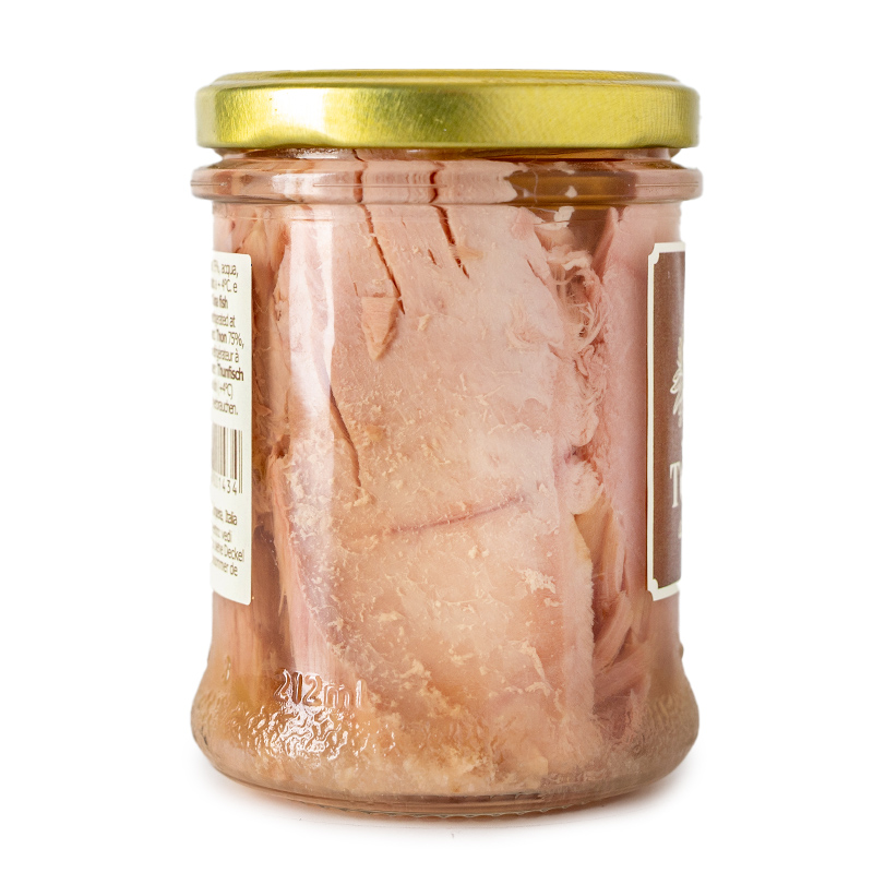Tuniak v soľnom náleve TONNO AL NATURALE je prirodzenou alternatívou tuniaka v oleji – voda skvelo uchováva jeho originálnu chuť a arómu. V porovnaní s tuniakom v oleji má toto balenie výhodu v tom, že je ľahšie a rýchlejšie stráviteľné. Pripravuje sa len z malých rýb, pred prípravou sa čistí na pare, ručne reže a následne plní do každej fľaše.