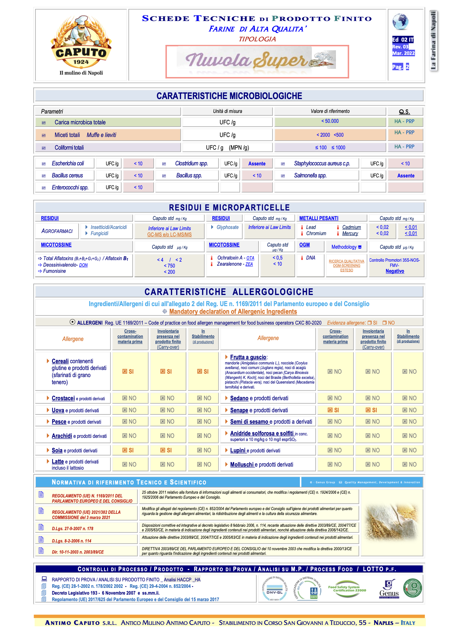 Zloženie: Múka z mäkkej pšenice typu "0". Obsahuje lepok. Môže obsahovať sóju.