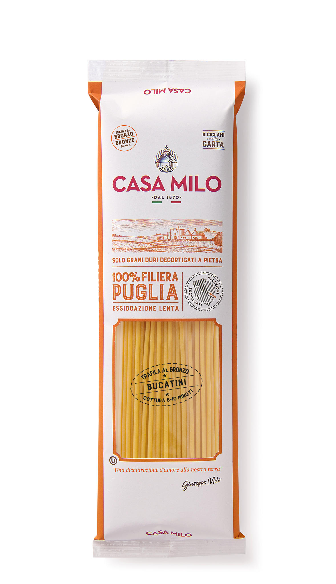 Cestoviny CASA MILO patria k najchutnejším v Taliansku. Vďaka ich unikátnej výrobe ako aj pomalému sušeniu si zachovávajú ideálne nutričné hodnoty a tiež štruktúru dostatočne pórovitú a pevnú, aby na nich výborne priľnuli omáčky. Výrobný proces je vo všetkých fázach šetrný, aby mechanicky nepoškodil štruktúru škrobu, čo cestovinám zaručuje živú a lákavú farbu.