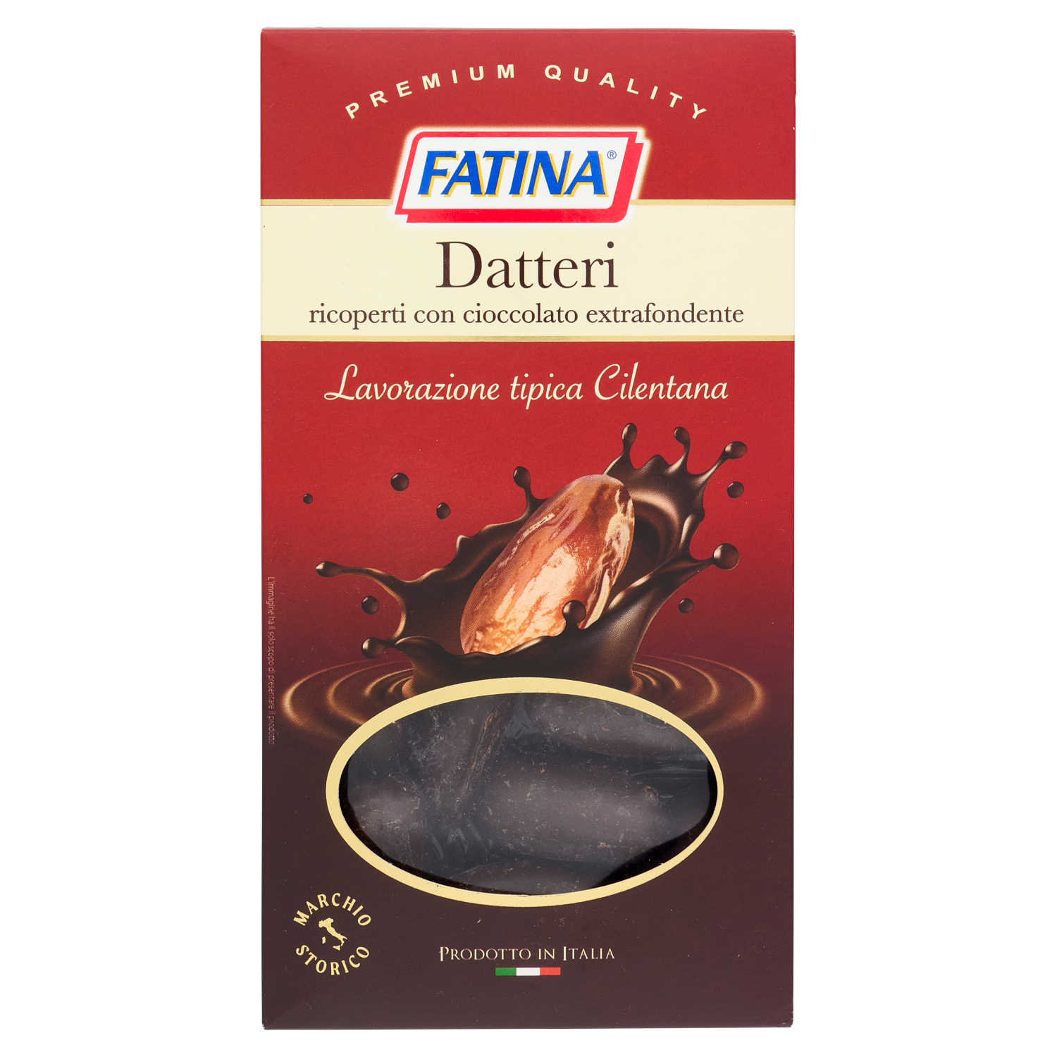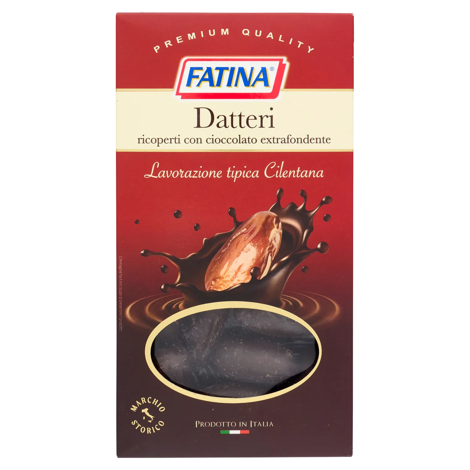 Fatina datle v extra horkej čokoláde sú celé, mäkké datle obalené v kvalitnej čokoláde. Vďaka prirodzenej sladkosti datlí a výraznej chuti extra horkej čokolády vzniká vyvážená kombinácia, ktorá nie je presladená a má príjemnú, plnú čokoládovú arómu. Datle si zachovávajú svoju šťavnatosť, zatiaľ čo čokoládový obal dodáva produktu jemne chrumkavú povrchovú vrstvu.
