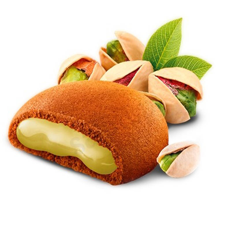 Zloženie: pšeničná múka, cukor, rastlinné oleje (palmový, sójový, slnečnicový), glukózový sirup, podstielkové vajcia, odstredené plnotučné mlieko v prášku, pistáciová pasta v kréme 5%, kukuričný škrob, pšeničný škrob, sušená srvátka (mlieko), kakao, prášok z vaječných žĺtkov, soľ, emulgátor: sójový lecitín, rastlinné výťažky (z citróna, svetlice farbiarskej, spiruliny a jablka), kypriace látky: (hydrogenuhličitan sodný, hydrogenuhličitan amónny), arómy. Môže obsahovať stopy iných orechov, arašidov a horčice.