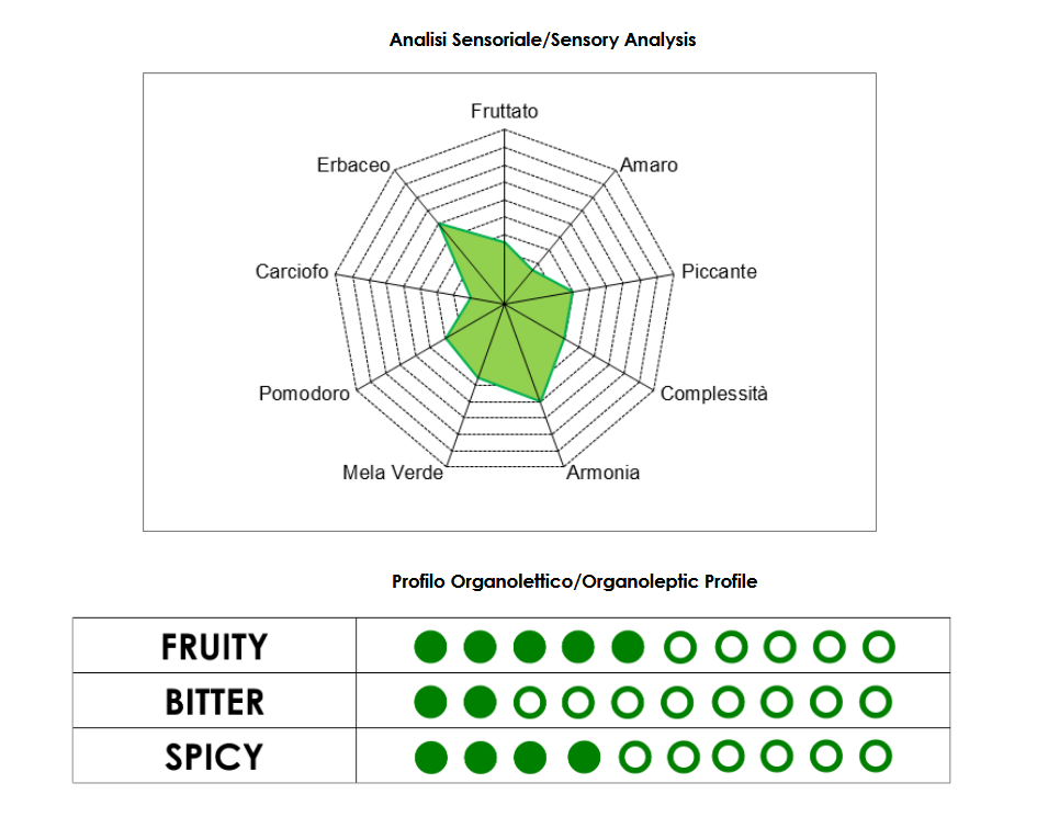Peranzana je typickým predstaviteľom stredne ovocných olejov, ktoré vynikajú univerzálnosťou v kuchyni. Výborne sa hodí do zeleninových šalátov, na čerstvý chlieb, ryby, biele mäso či grilovanú zeleninu. Skvelo dopĺňa aj jemné cestovinové pokrmy alebo polievky, ktorým dodá sviežu arómu a prirodzenú chuť olív. Olej má nízku aciditu (0,23 %) a vysoký obsah prírodných antioxidantov (polyfenolov 359 mg/kg), vďaka čomu je nielen chuťovo bohatý, ale aj zdraviu prospešný.
