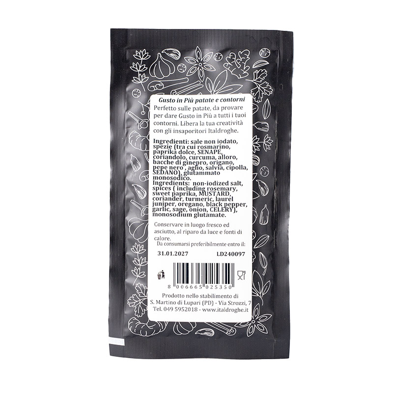 Predstavujeme Vám Zmes korenín na zemiaky od spoločnosti Italdroghe, ktorá znamená ideálny spôsob, ako dochutiť vaše zemiaky jednoducho a ušetriť pritom čas. Výhodou tejto zmesi je najmä to, že ušetríte množstvo iných korenín, aké by ste normálne pri varení použili. Tento produkt je výsledkom starostlivého výberu najkvalitnejších ingrediencií priamo z talianskej krajiny, kde vedia, čo je skutočná chuť.