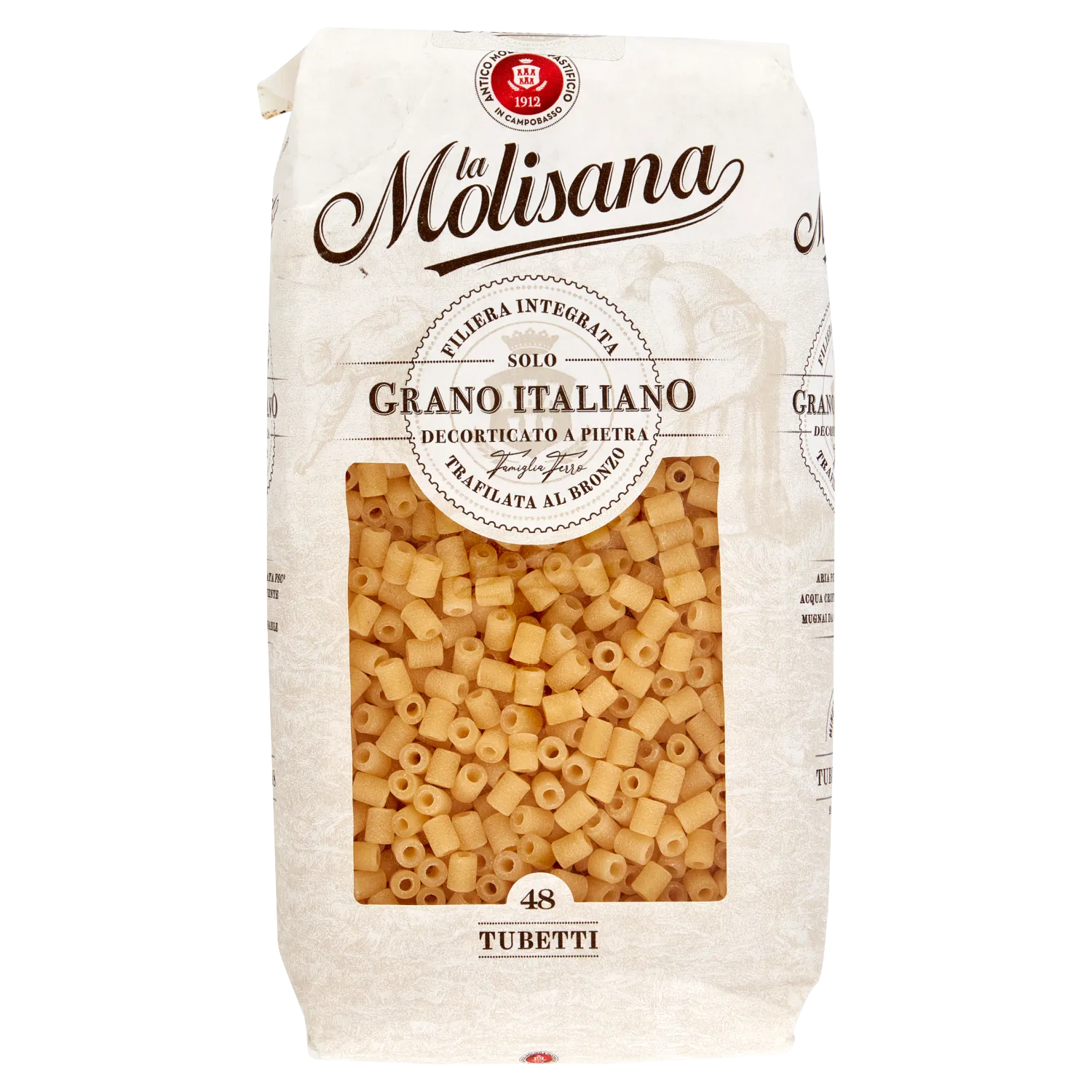 Tubetti La Molisana sú všestranné cestoviny, ktoré prinesú do vašej kuchyne dotyk talianskej autenticity. Skvele sa hodia do minestrone, fazuľových polievok alebo ako základ jednoduchých pokrmov s olivovým olejom, zeleninou či parmezánom. Ich kvalita a chuť vás prenesú priamo do srdca Talianska – tam, kde sa cestoviny robia s láskou a rešpektom k tradícii.