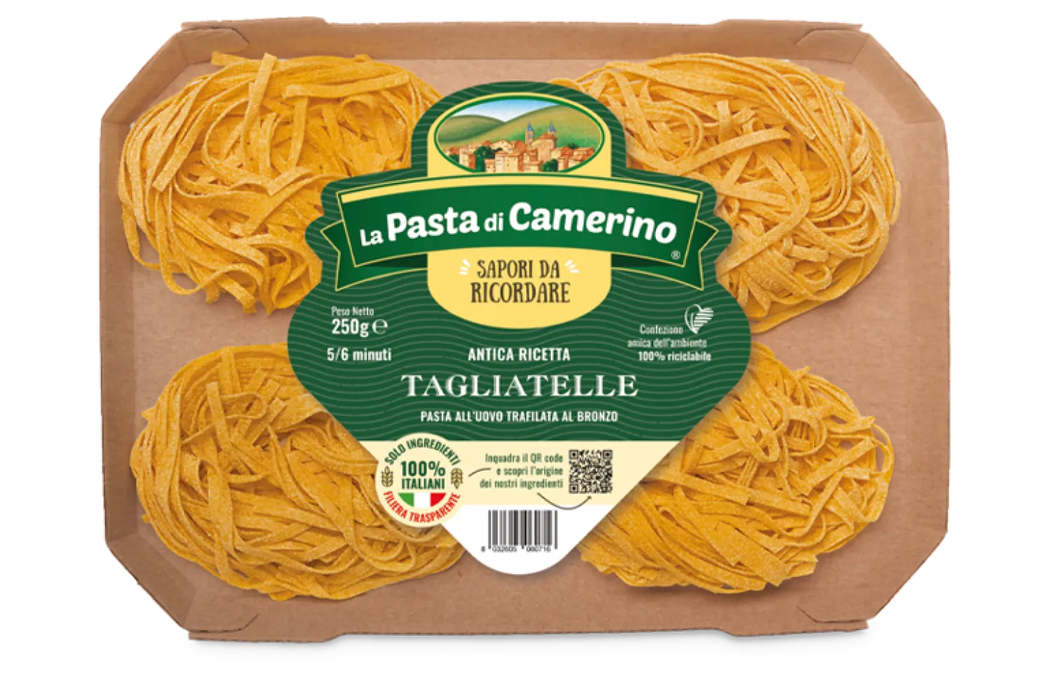 Značka La Pasta di Camerino z regiónu Marche pracuje s tradičným postupom – pomalé miešanie cesta, jeho odpočinok a sušenie pri nízkych teplotách. Tento spôsob výroby zachováva ideálnu textúru, rovnomerné varenie a prirodzenú chuť vaječných cestovín. Firma používa len taliansku pšenicu a patrí medzi najuznávanejších výrobcov remeselných cestovín v Taliansku.