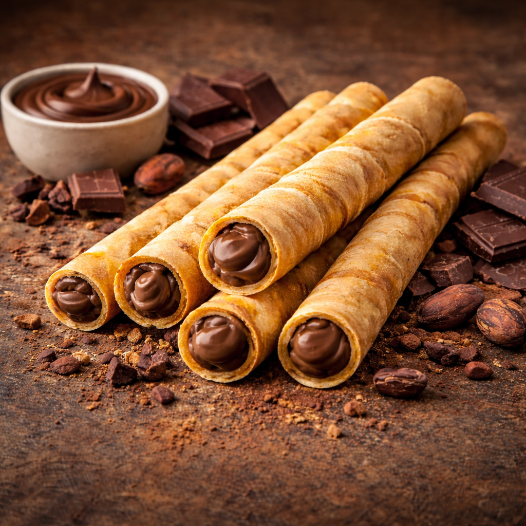 Vyskúšajte naše „Roll Break Cacao“, trubičky plnené kakaovým krémom (66%). Vyberte si svoju obľúbenú a dajte si prestávku. Doprajte si malú radostnú chvíľu s našimi Roll Break Cacao. Tieto lahodné trubičky, naplnené jemným kakaovým krémom, sú ideálnou voľbou pre chvíle, keď si chcete oddýchnuť a vychutnať si niečo dobré.