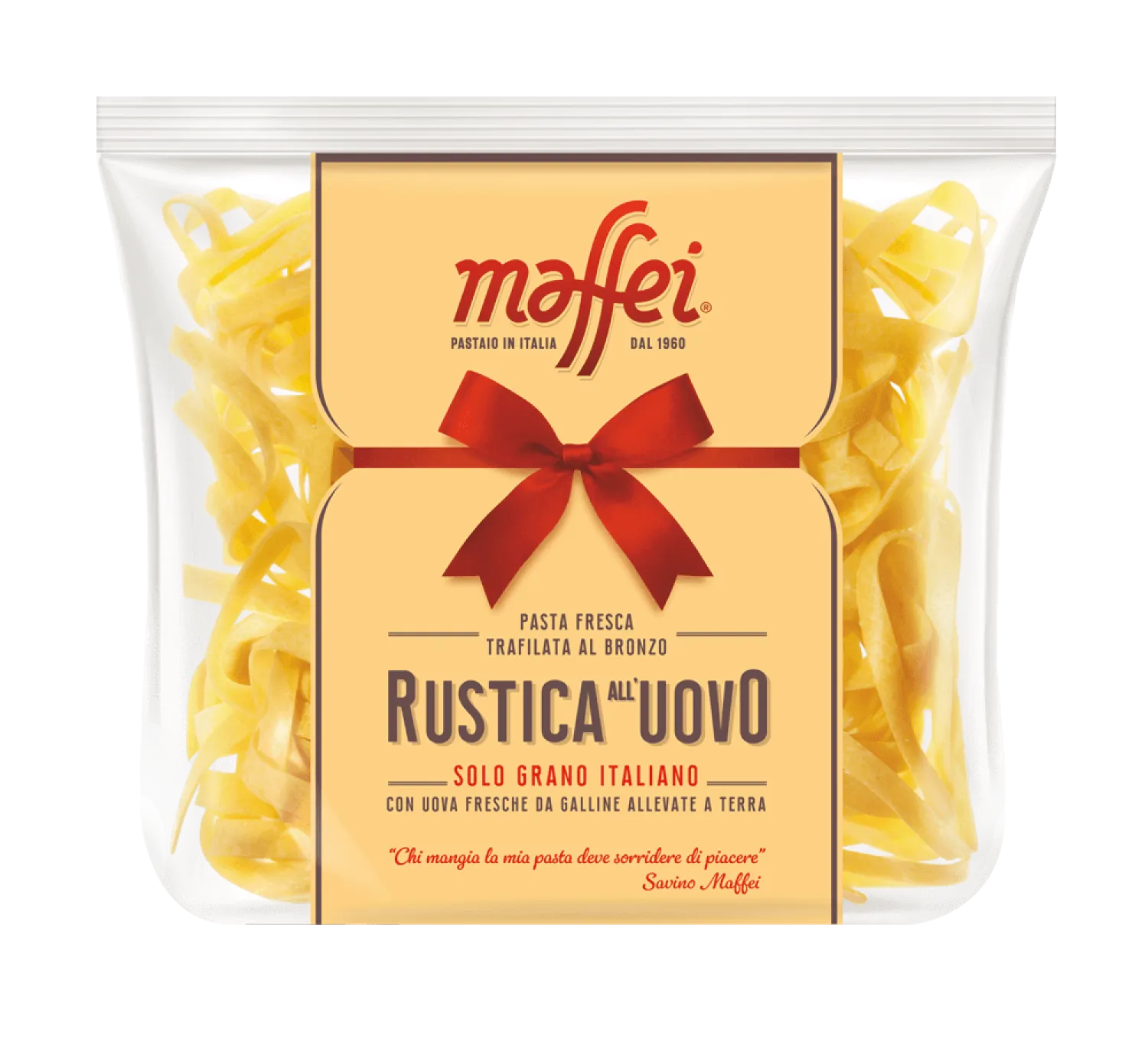 Značka Maffei patrí medzi najuznávanejších výrobcov čerstvých cestovín v Taliansku. Kombinuje tradičné remeselné postupy s modernou technológiou, pričom kladie dôraz na kvalitu surovín a presnosť spracovania. Cestoviny sa vyrábajú pomaly a pri nízkej teplote, aby si zachovali prirodzenú chuť pšenice, žltú farbu a výbornú konzistenciu. Každé balenie je výsledkom poctivej práce a talianskej vášne pre dokonalé jedlo.