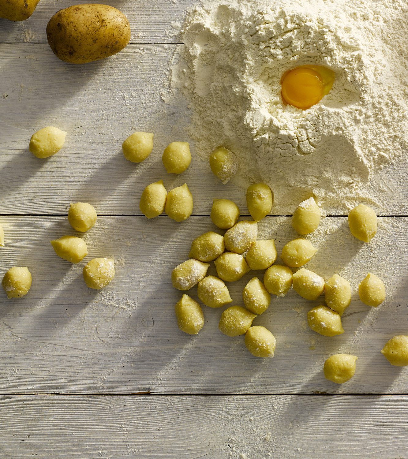 Zloženie: čerstvé zemiaky 80%, múka z tvrdej pšenice 10%, zemiakový škrob 6,5%, ryžová múka 1,5%, soľ 1,4%, regulátor kyslosti: kyselina mliečna 0,45%, konzervačná látka: kyselina sorbová 0,08%, prírodná aróma 0,06%, kurkuma 0,01%. Môže obsahovať stopy sóje.
