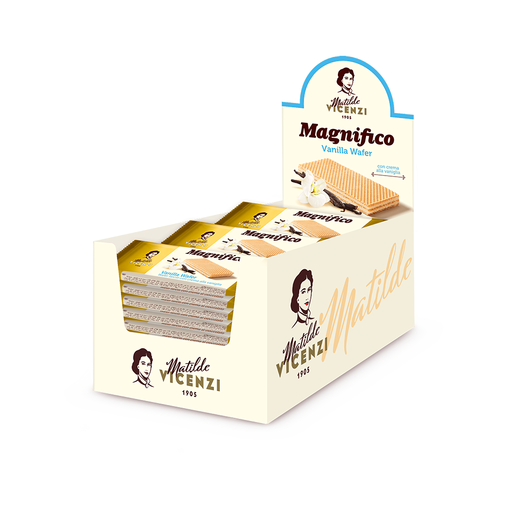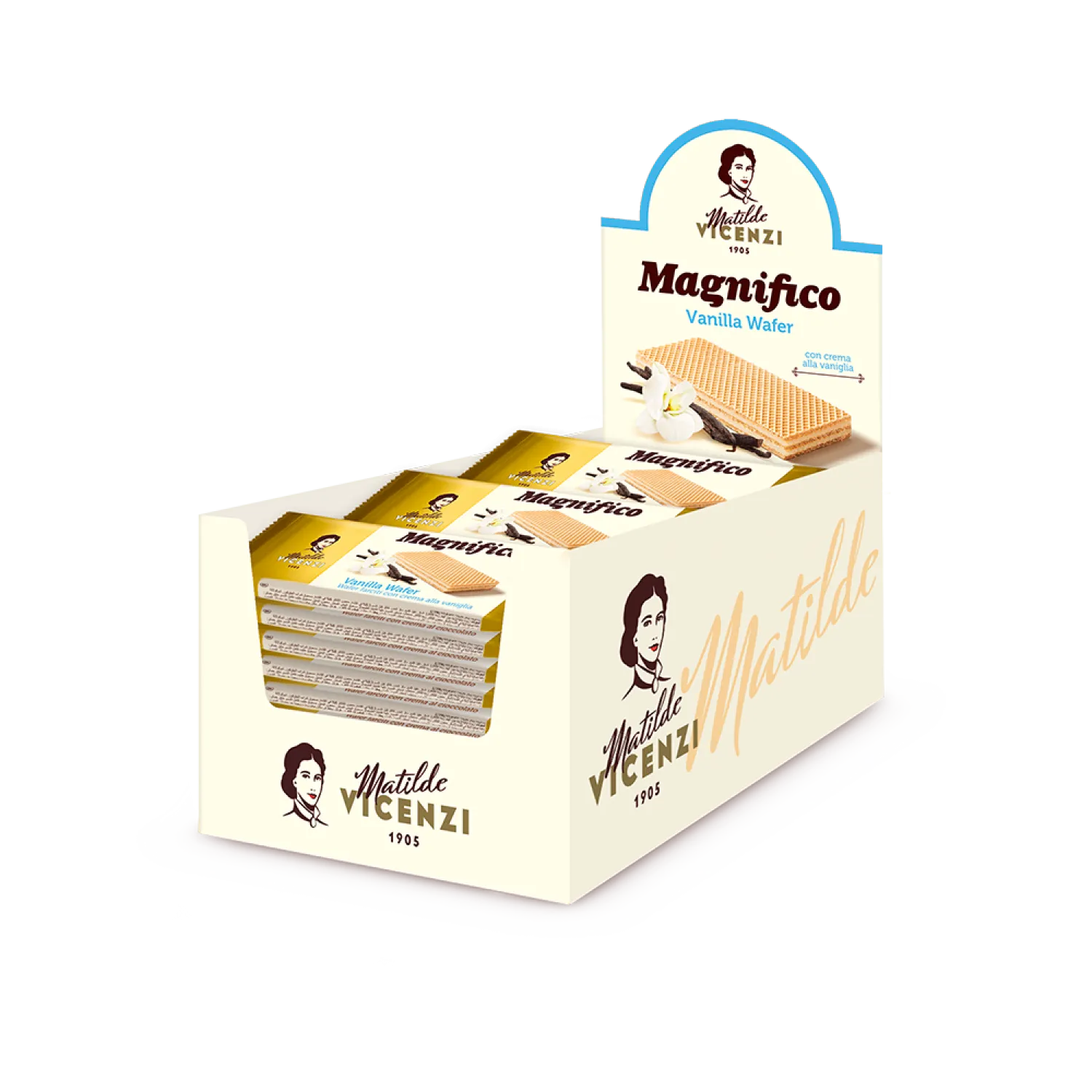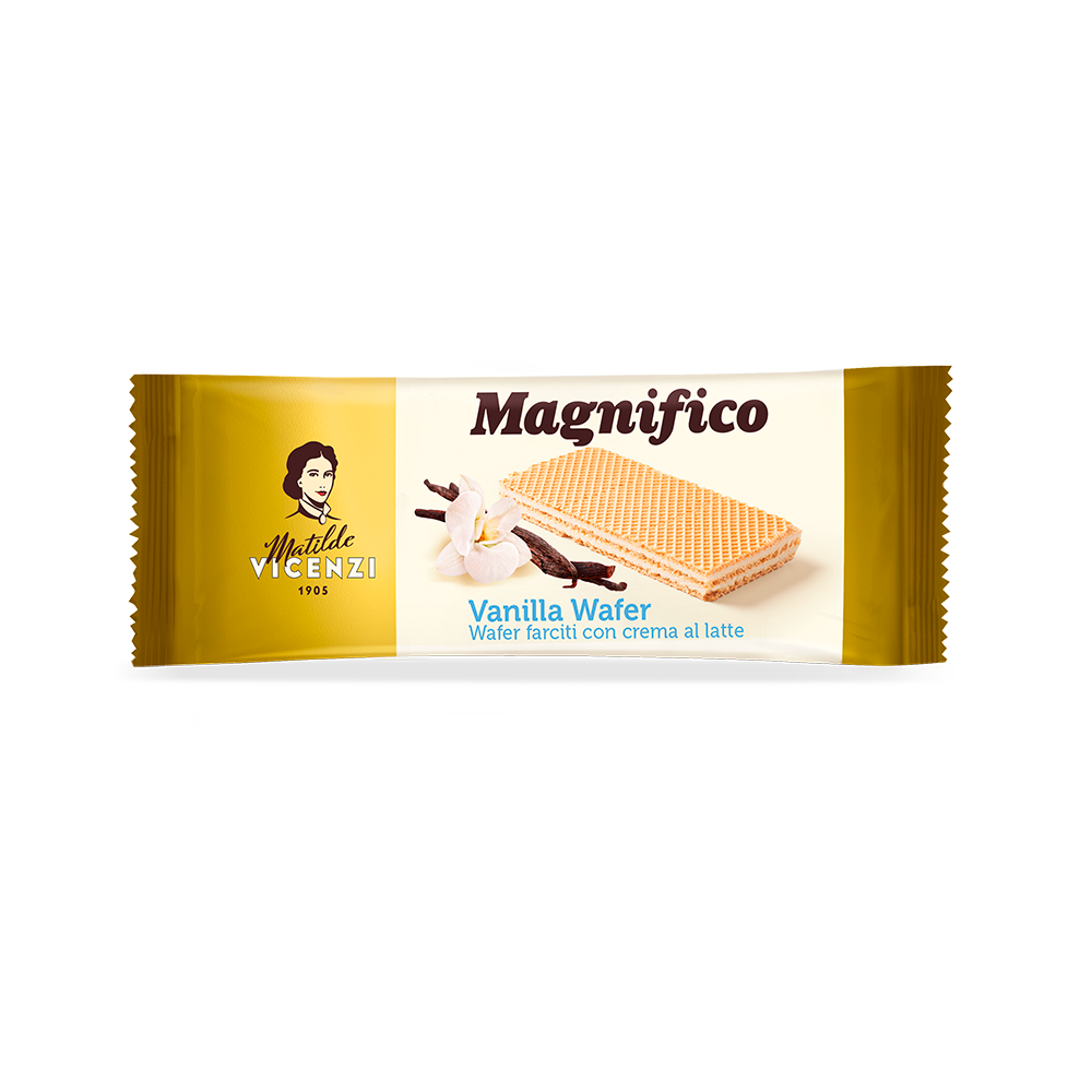 Predstavujeme Vám vanilkové oblátky Magnifico od spoločnosti Matilde Vicenzi, ktoré  ponúkajú nezabudnuteľný zážitok pre vaše chuťové bunky. Tieto výnimočné oblátky sú dokonalou kombináciou jemnej vanilkovej vône a bohatej mliečnej krémovej náplne.