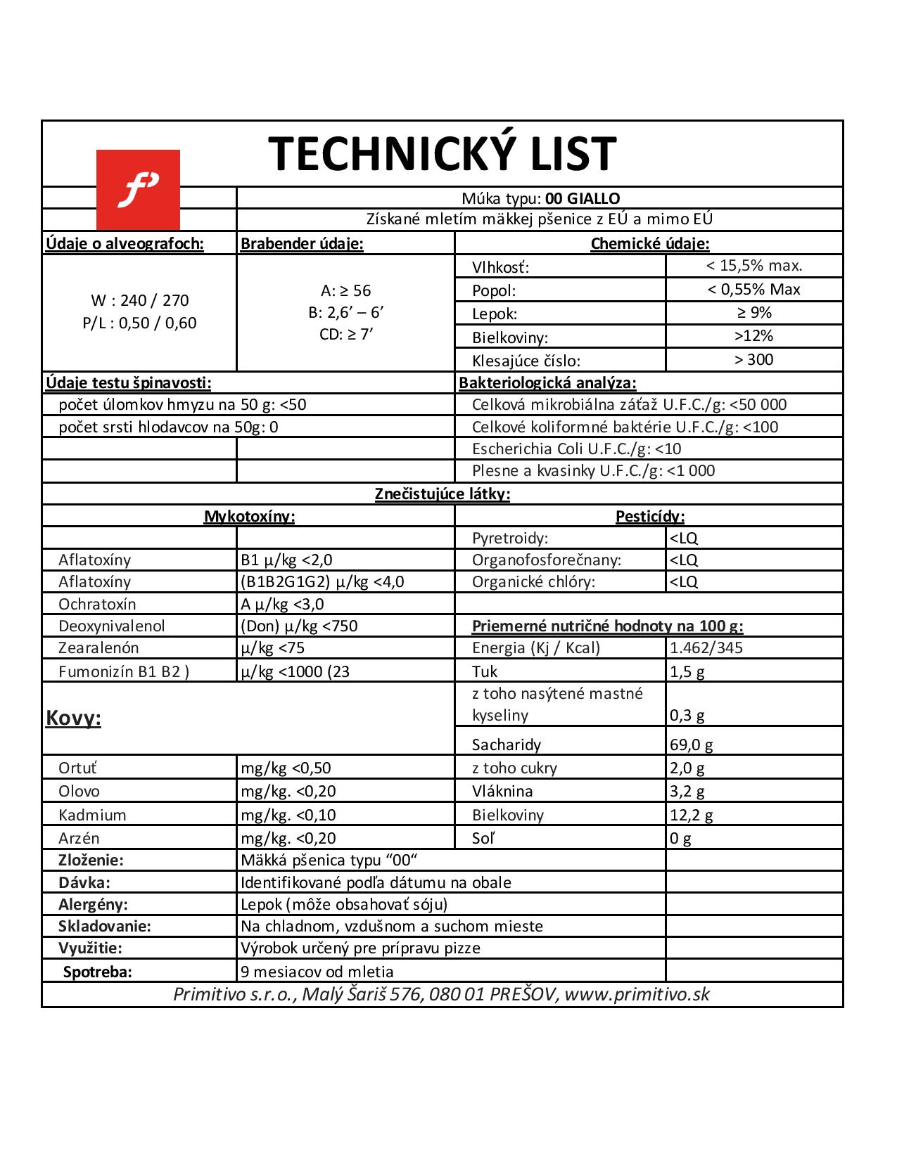 Jemnozrnná „hladká“ pšeničná múka (v Taliansku známa ako farina) GIALLO od MOLINO PASINI je prémiová múka vytvorená na prípravu pizze. Ide o múku typu „00“, čo v talianskej kuchyni v preklade znamená, že je zo všetkých druhov múk mletá najjemnejšie, vďaka čomu sa v nej len veľmi mizivo vyskytujú otruby. Cesto z nej uhnetené je známe svojou hodvábnou textúrou, príjemnou na dotyk.
