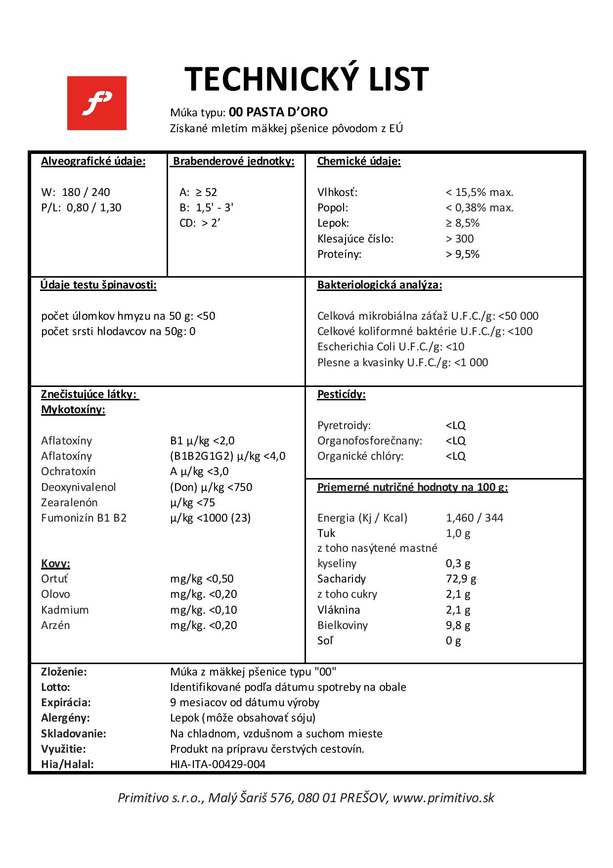 Pasta d'Oro ® je múka, ktorá je testovaná na prítomnosť kontaminujúcich látok, ako sú mykotoxíny, pesticídy, aflatxíny a kovy, pričom všetky hodnoty sú pod limitmi stanovenými príslušnými regulačnými orgánmi. Tak prečo nevyskúšate Pasta d'Oro ®? Či už ste začiatočník v domácej výrobe cestovín alebo skúsený kuchár, táto múka Vám umožní vytvárať neuveriteľne chutné cestoviny.