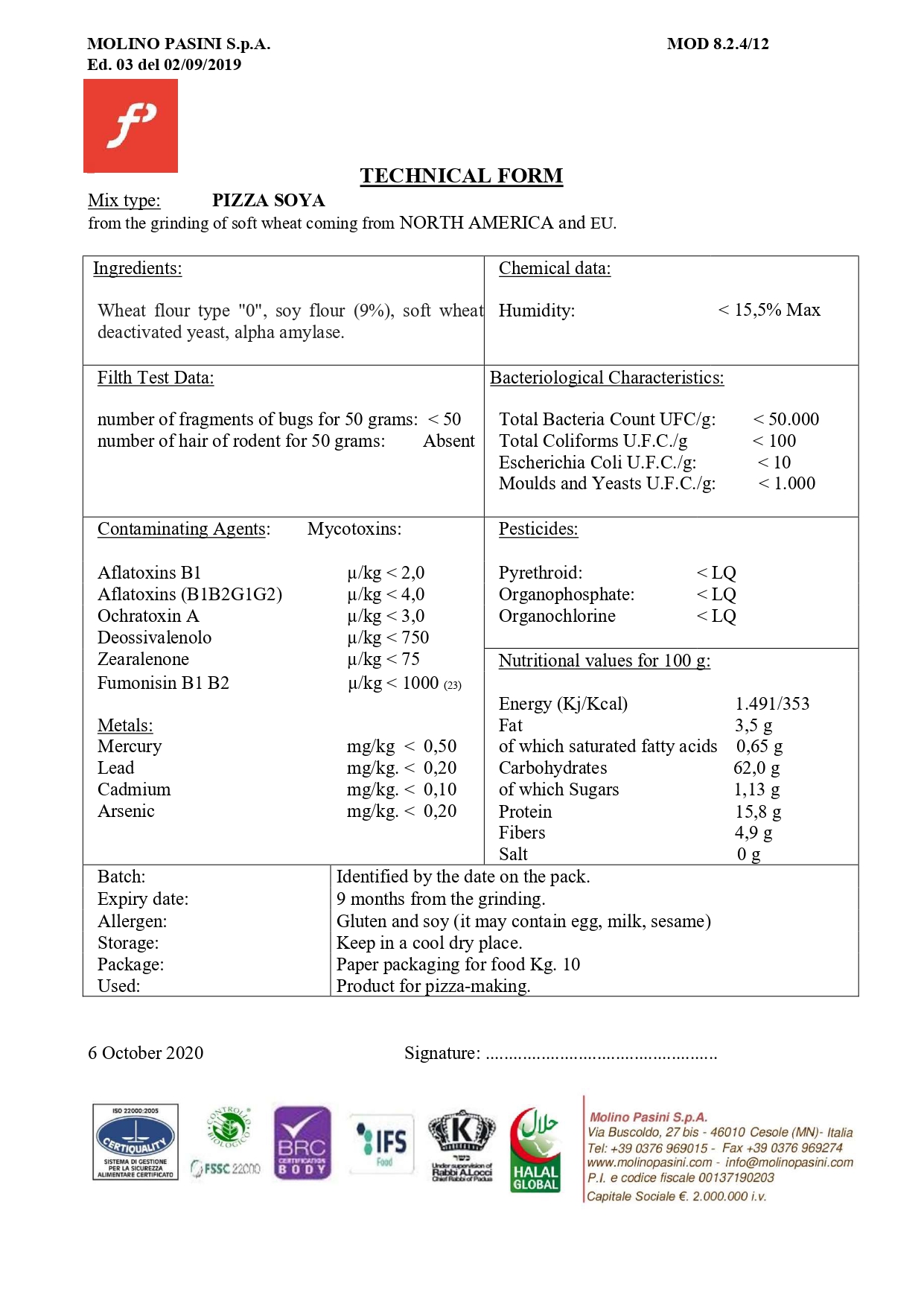 Pre dosiahnutie optimálnych výsledkov odporúčame zmiešať Pizza Soia10kg v pomere 50 % s inou silnejšou múkou, napríklad s múkou 00 Arancio. Takáto kombinácia predlžuje životnosť hotového cesta až na 5–6 dní a zlepšuje jeho konzistenciu, trvanlivosť a organoleptické vlastnosti. Výsledkom je vždy dokonalé cesto s vyváženou textúrou a autentickou talianskou chuťou, ktoré zaručí, že každá pizza bude skutočným gurmánskym zážitkom.