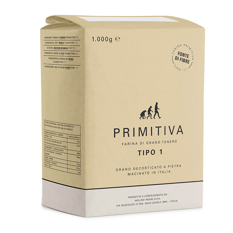 Hladká pšeničná múka (v Taliansku známa ako farina) PRIMITIVA od MOLINO PASINI je špeciálna múka, ktorá sa získava celotelovým mletím obilnín. Ide o múku typu „1“, čo v talianskej kuchyni v preklade znamená, že sa jedná o múku z tých najkvalitnejších obilnín s vysokým obsahom vlákniny, bielkovín a minerálov. Cesto z nej uhnetené je mäkké, ľahko stráviteľné a vhodné i na mrazenie. Táto vskutku unikátna múka sa hodí na prípravu najrôznejších pokrmov z cukrární, pekární i pizzerií.