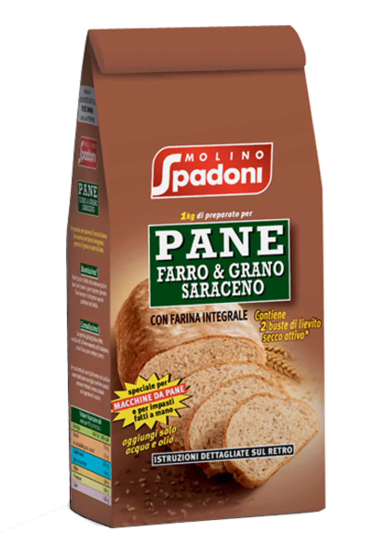 Zmes kombinuje špaldu (farro) – obľúbenú pre svoju jemne orieškovú chuť – s pohánkou (grano saraceno), ktorá dodáva cestu zemitý podtón a prirodzene bezlepkový charakter. To všetko je doplnené o celozrnnú múku, bohatú na vlákninu a minerály, vďaka ktorej má výsledný chlieb rustikálnu štruktúru, sýtu arómu a dlhšiu čerstvosť.