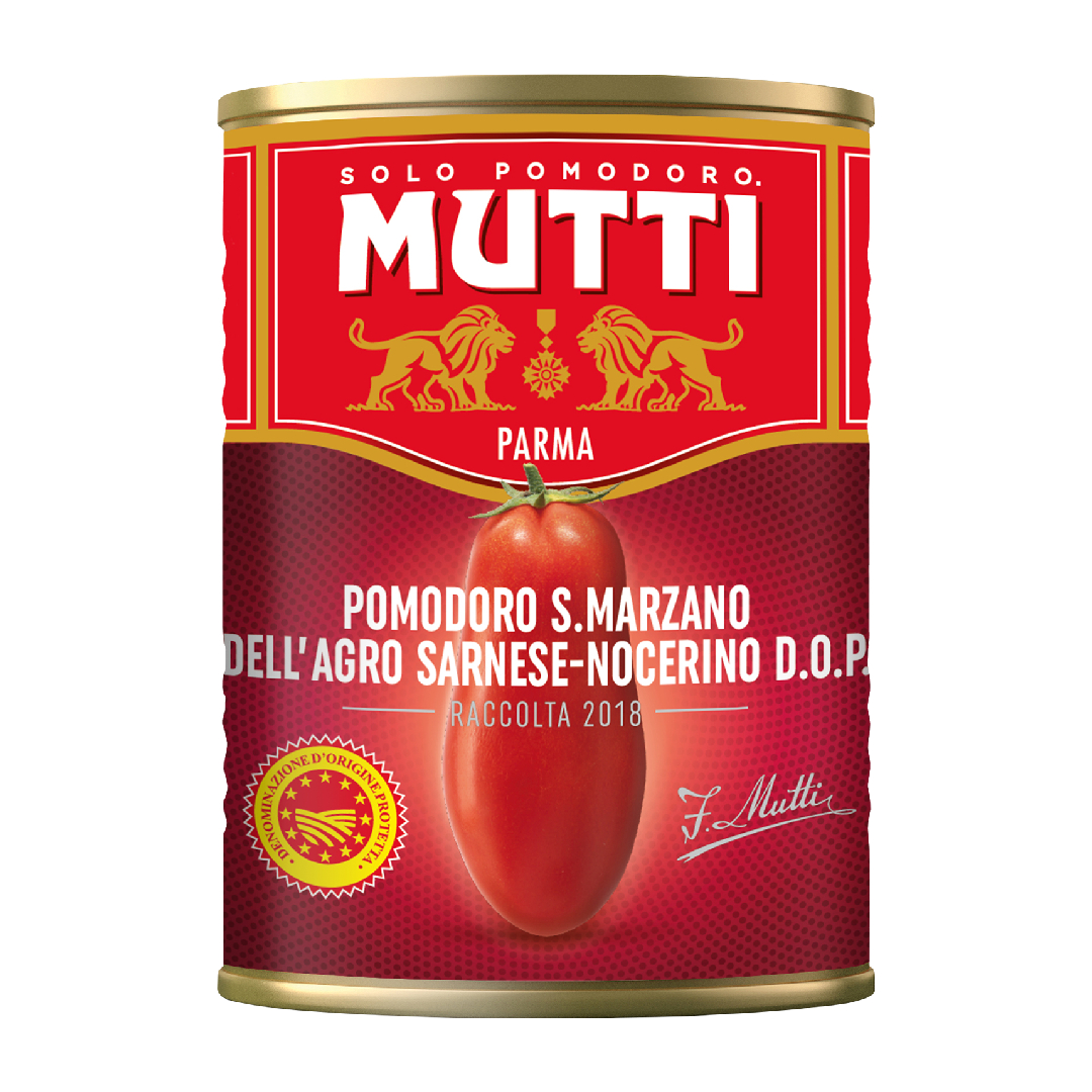 Mutti Pomodori San Marzano DOP sú celé lúpané paradajky s chráneným označením pôvodu, ktoré patria medzi najuznávanejšie suroviny talianskej kuchyne. Vyznačujú sa pretiahnutým tvarom, pevnou dužinou a vyváženou chuťou s nízkou kyslosťou, vďaka čomu sú ideálne na prípravu kvalitných paradajkových omáčok. Po spracovaní si zachovávajú prirodzenú štruktúru a čistú paradajkovú chuť bez rušivých tónov, čo je pri tomto type paradajok kľúčové.