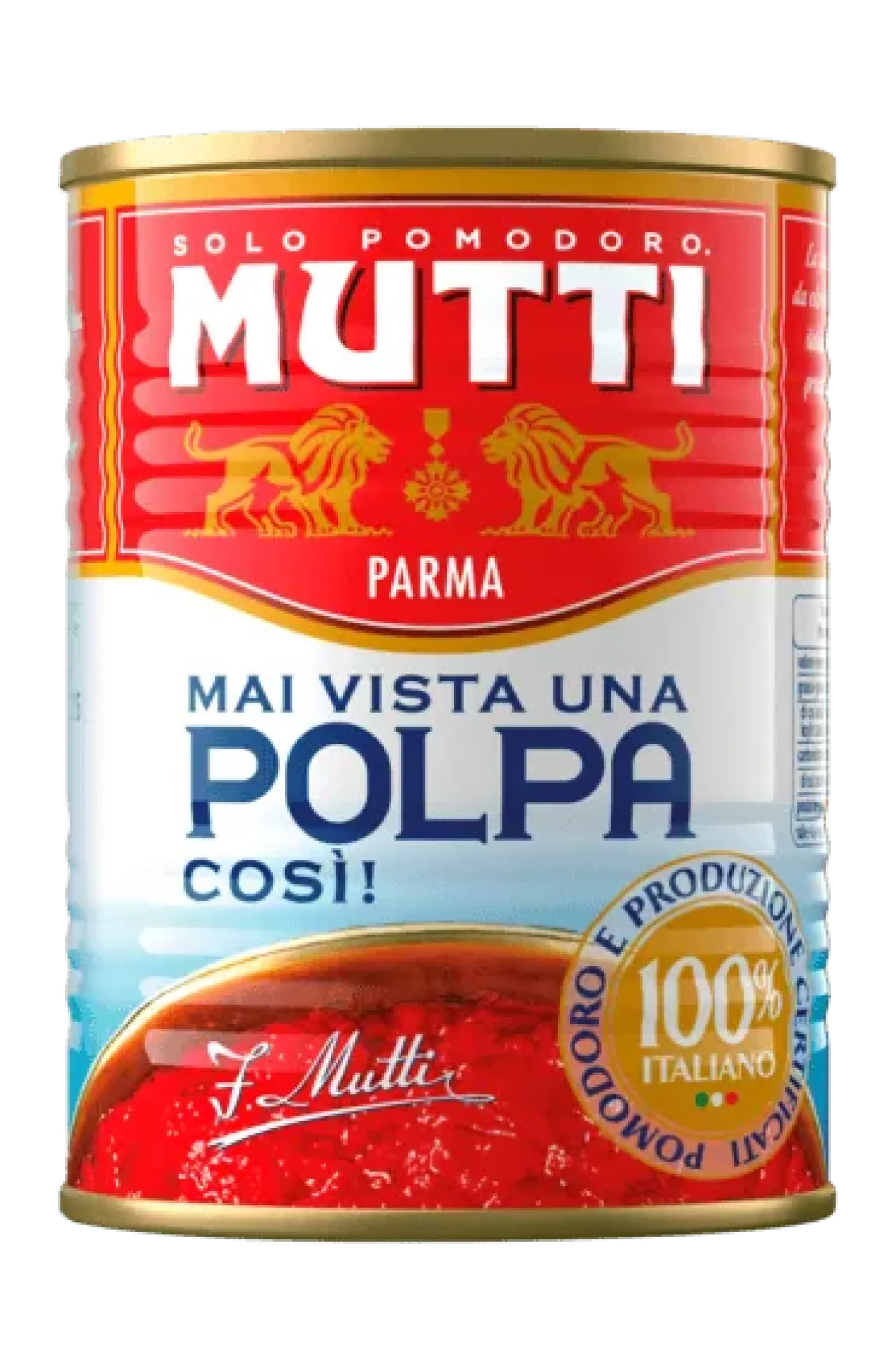 Značka Mutti, pochádzajúca z mesta Parma, vyrába paradajkové produkty od roku 1899 a patrí medzi najuznávanejšie značky v Taliansku. Spolupracuje výhradne s talianskymi farmármi, pričom kladie dôraz na kvalitu, čerstvosť a udržateľné pestovanie paradajok.