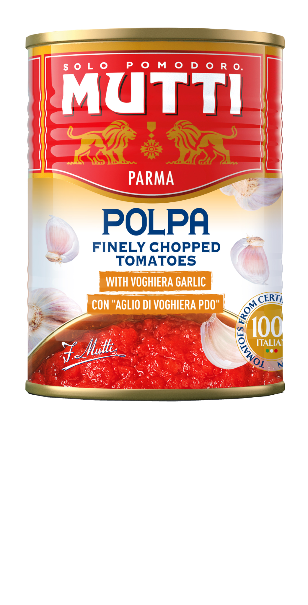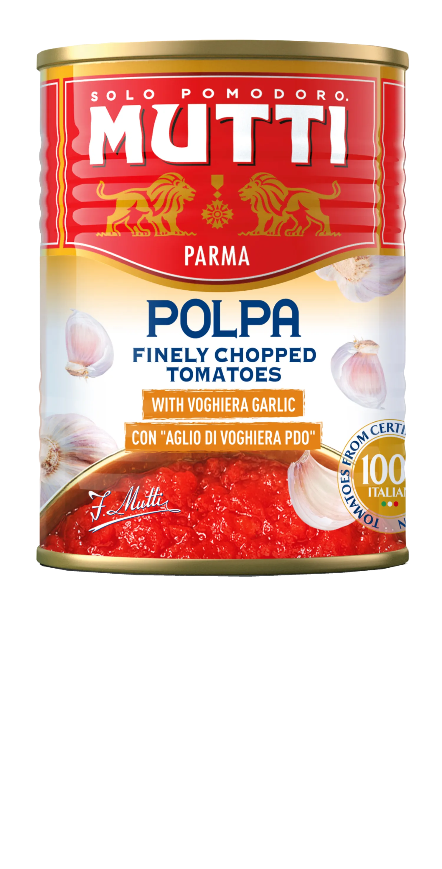 Značka Mutti, založená v roku 1899 v meste Parma, patrí medzi najuznávanejších talianskych výrobcov paradajkových produktov. Paradajky pestuje v spolupráci s miestnymi farmármi v regiónoch Emilia-Romagna a Puglia, kde dozrievajú pod talianskym slnkom. Všetky produkty Mutti sú bez konzervantov, farbív a umelých prísad.