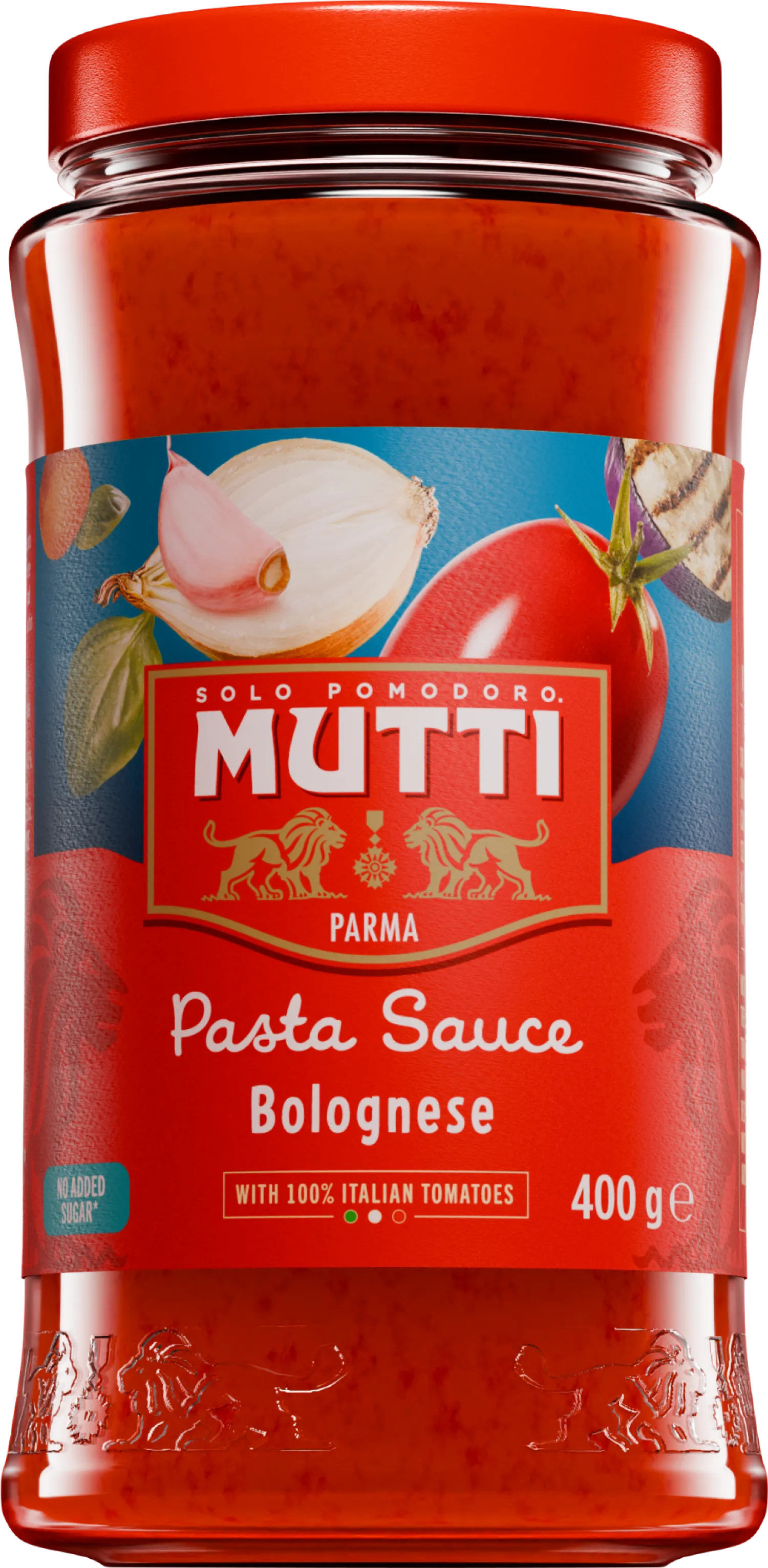 Mutti paradajková omáčka Bolognese je hotová omáčka pripravená podľa tradičnej talianskej receptúry z regiónu Emilia-Romagna. Spája kvalitné talianske paradajky s mletým mäsom, cibuľou, mrkvou, zelerom a aromatickými bylinkami. Omáčka má vyváženú chuť, hustú konzistenciu a je pripravená na okamžité použitie bez konzervantov, farbív a umelých prísad.