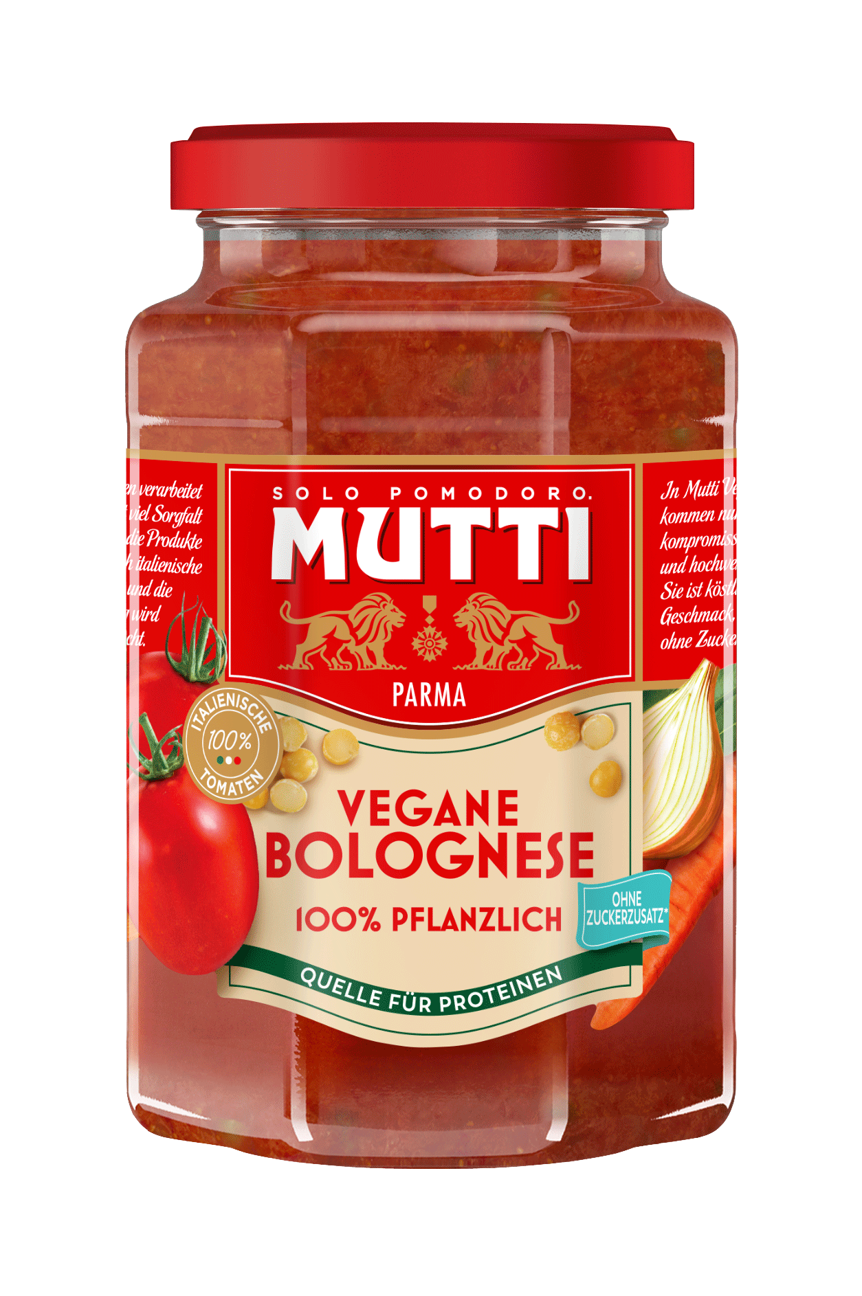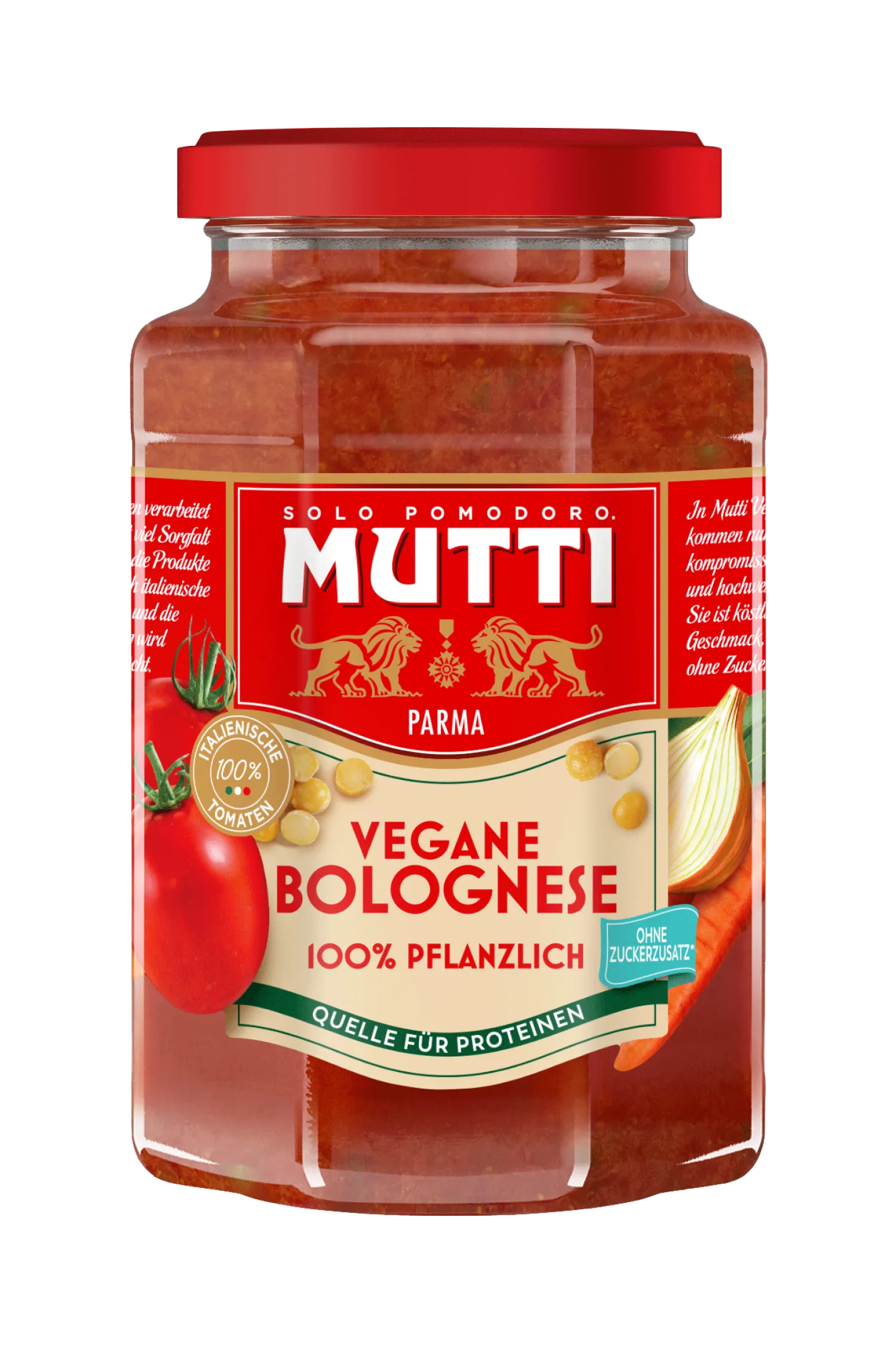 Značka Mutti je známa špecializáciou na spracovanie paradajok a dôrazom na ich kvalitu a pôvod. Vegan Bolognese je vhodná na rýchlu prípravu jedla bez kompromisov v chuti, pričom zachováva charakter tradičnej talianskej omáčky v rastlinnej podobe.