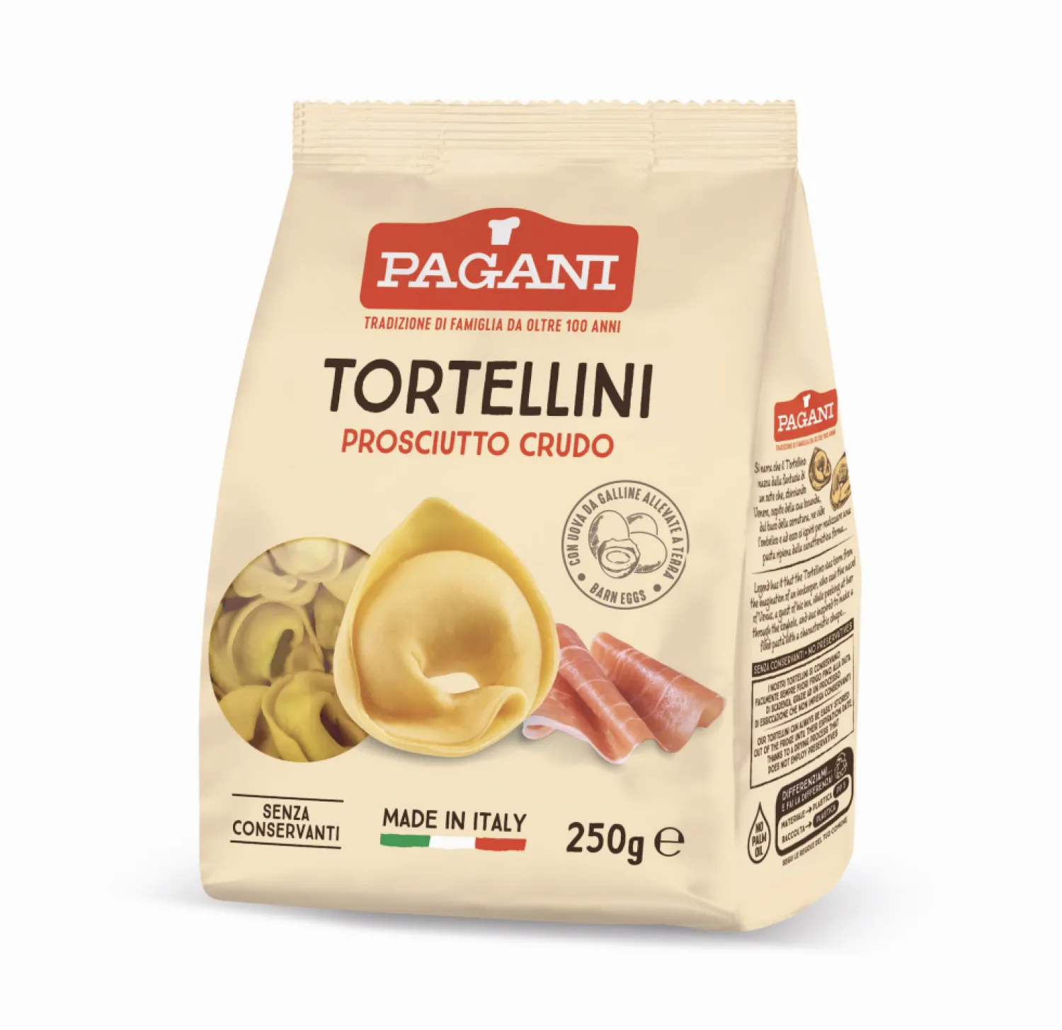 Pagani Tortellini Prosciutto Crudo sú ideálne na každodenný pôžitok aj na výnimočné chvíle. Sú dôkazom, že aj jednoduché jedlo môže byť výnimočné – ak je pripravené srdcom.
