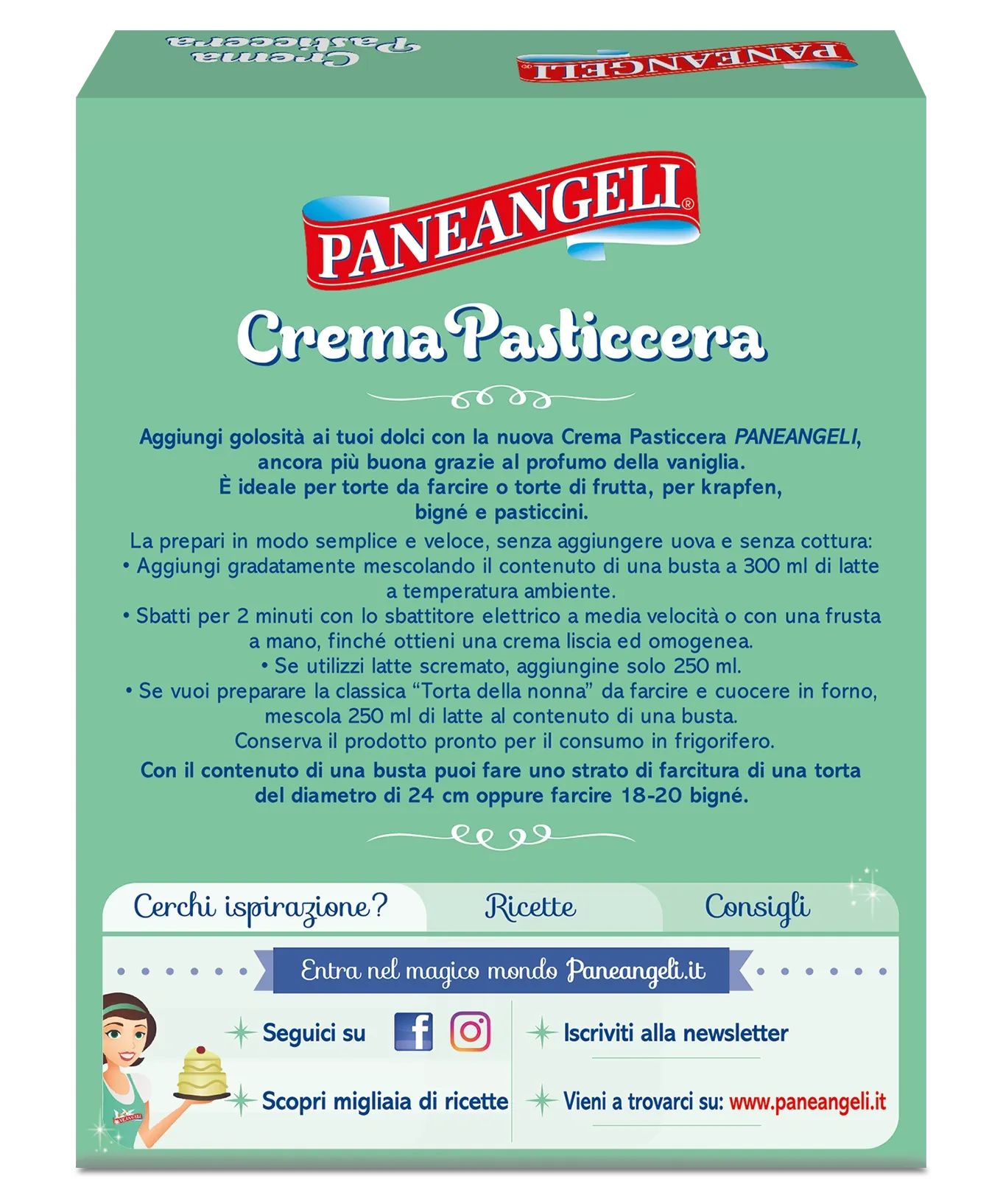 Vanilkový instantný krém Paneangeli je lahodná a praktická alternatíva na rýchle a jednoduché prípravy dezertov. Tento krém s jemnou vanilkovou arómou je ideálny na plnenie tort, zákuskov či ako základ pre rôzne krémové dezerty. Jeho príprava je neuveriteľne jednoduchá – stačí zmiešať obsah balenia s mliekom, a výsledkom je dokonale hladký a krémový dezert.