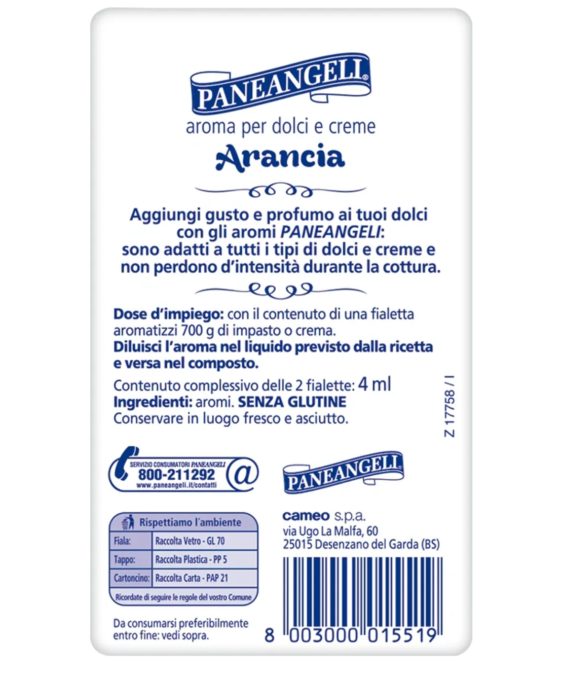 Paneangeli Aroma per dolci e creme Arancia prináša do vašich dezertov osviežujúcu a prirodzenú chuť pomaranča. Tento intenzívny pomarančový extrakt je perfektný pre tých, ktorí radi experimentujú s chuťami a chcú svojmu pečeniu dodať výrazný citrusový nádych. Pár kvapiek tohto extraktu dokáže obohatiť koláče, sušienky, krémy alebo bábovky o jemnú vôňu a chuť zrelých pomarančov, ktorá je ideálna najmä pre sviatočné recepty.