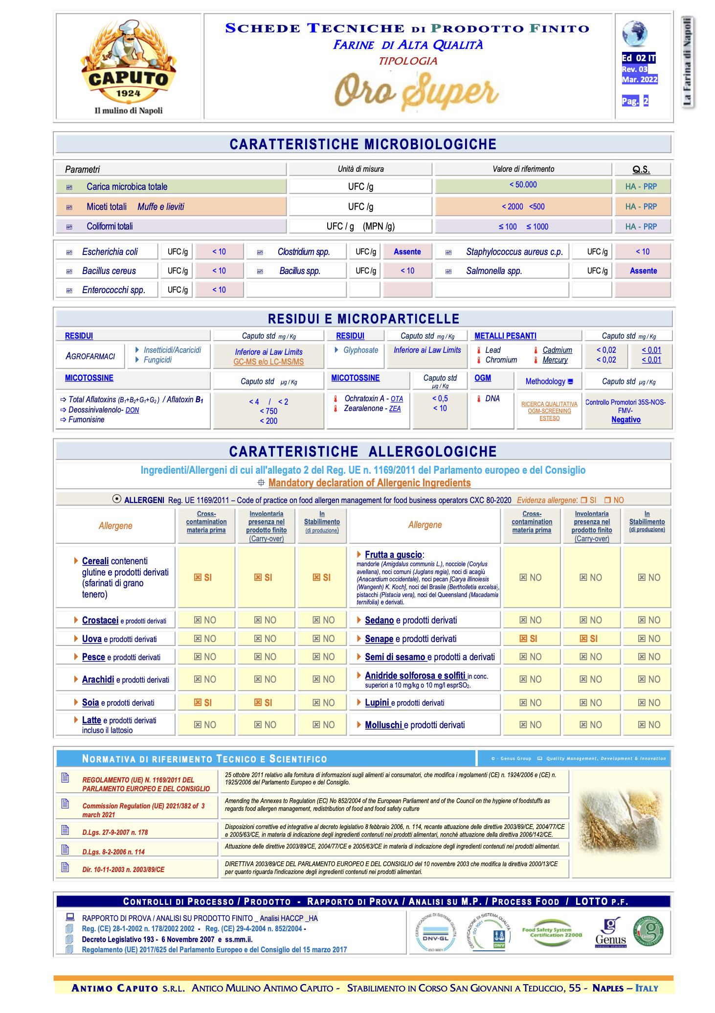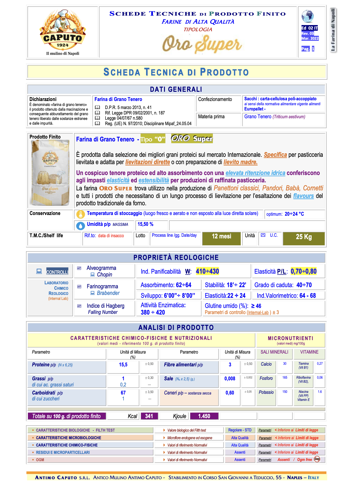Zloženie: Múka z mäkkej pšenice typu "0". Bez pridania aditív a enzýmov. Môže obsahovať stopy sóje. Obsahuje lepok.
