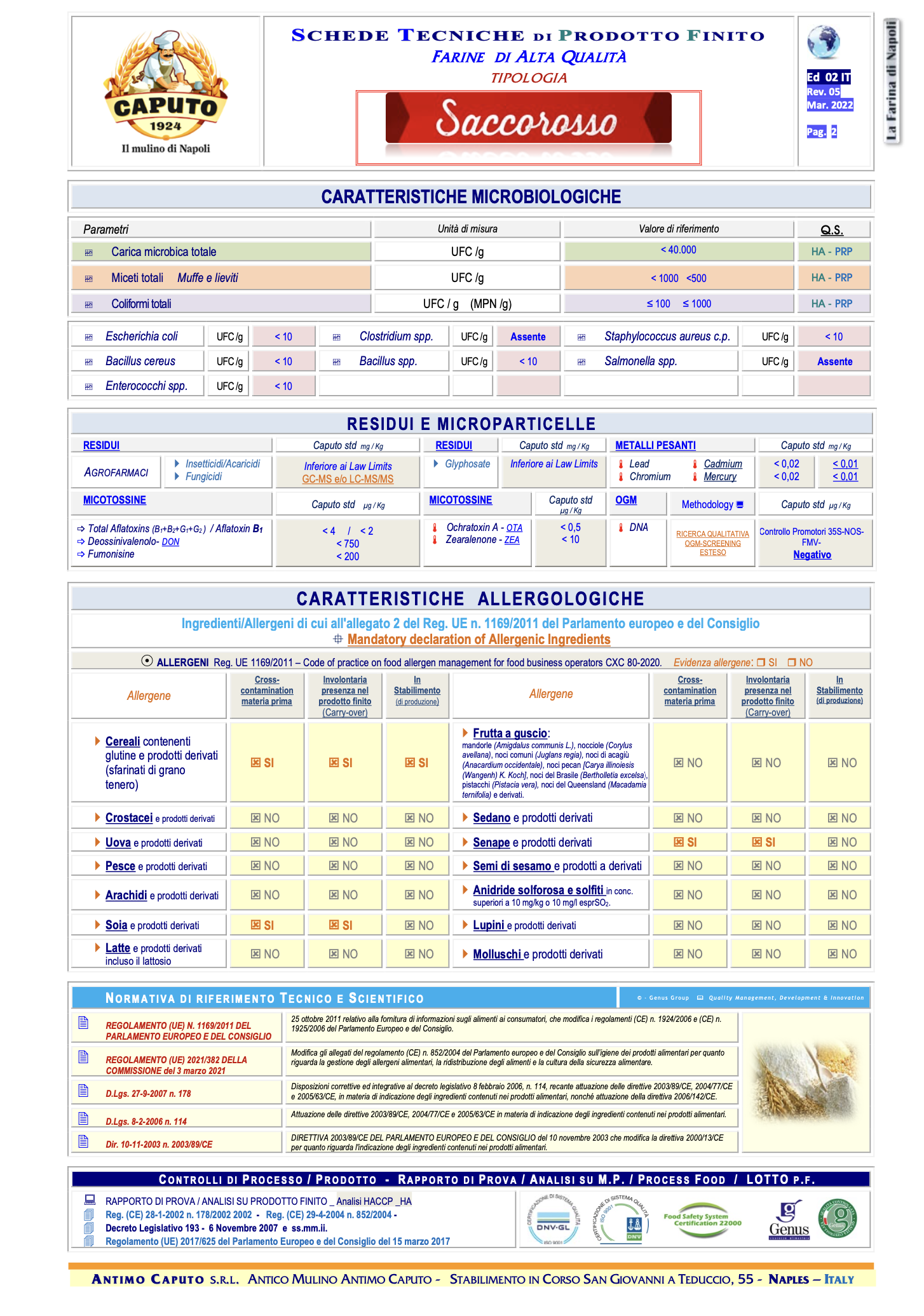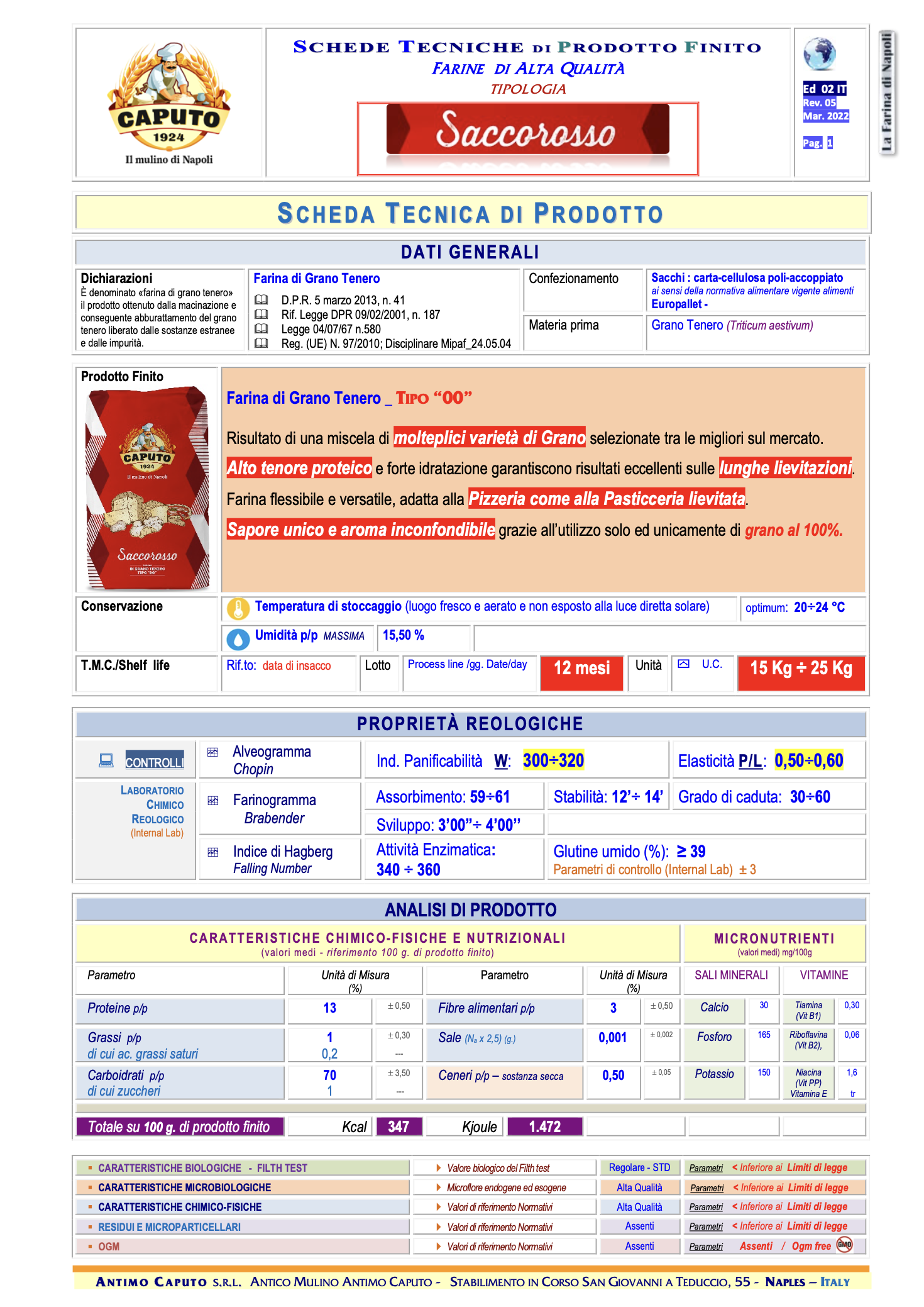Zloženie: mäkká pšeničná múka typu "00". Obsahuje lepok. Môže obsahovať sóju.
