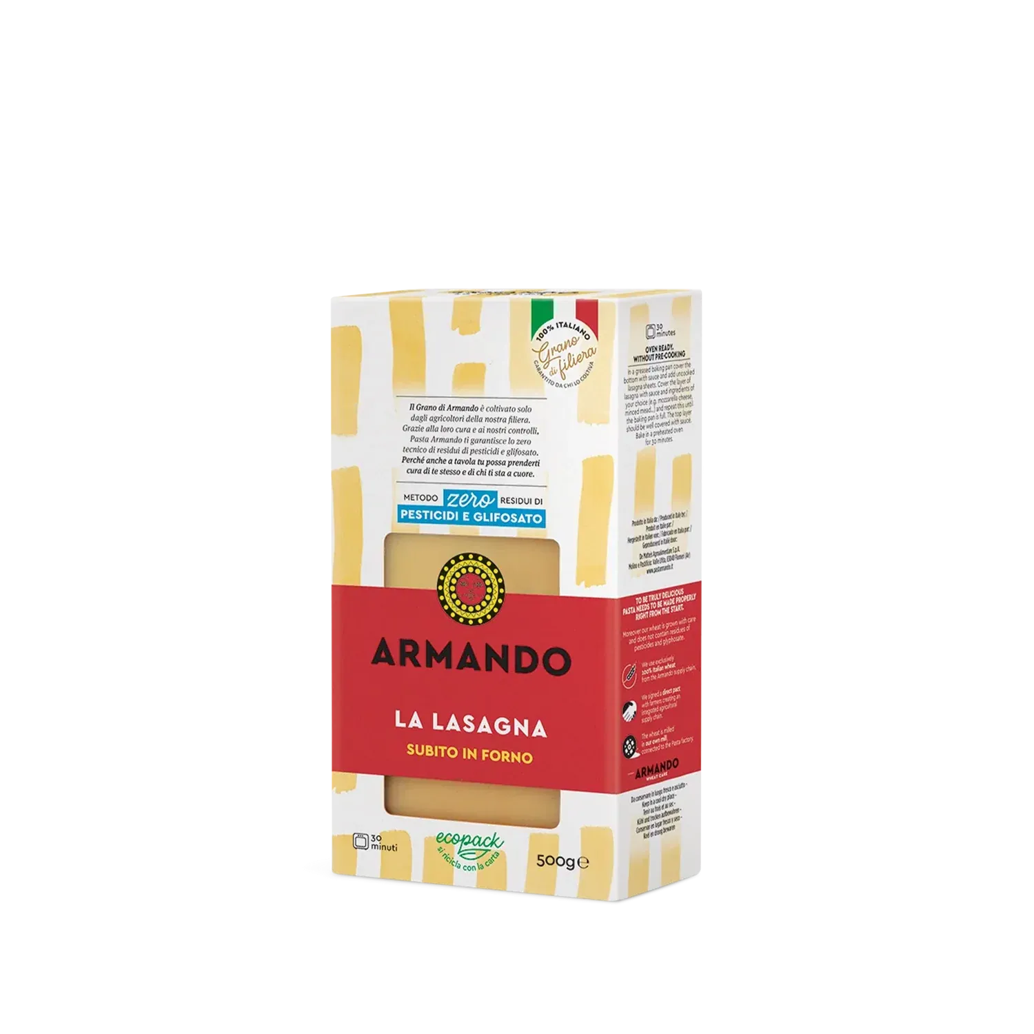 Armando La Lasagna nie je len obyčajná cestovina – je to pocta talianskemu remeslu a láske k domácemu vareniu. Vyrobená zo 100 % talianskej tvrdej pšenice pestovanej s rešpektom k pôde a bez použitia chemických hnojív, prináša čistú, prirodzenú chuť, ktorá sa v jedle nestratí, ale vynikne.