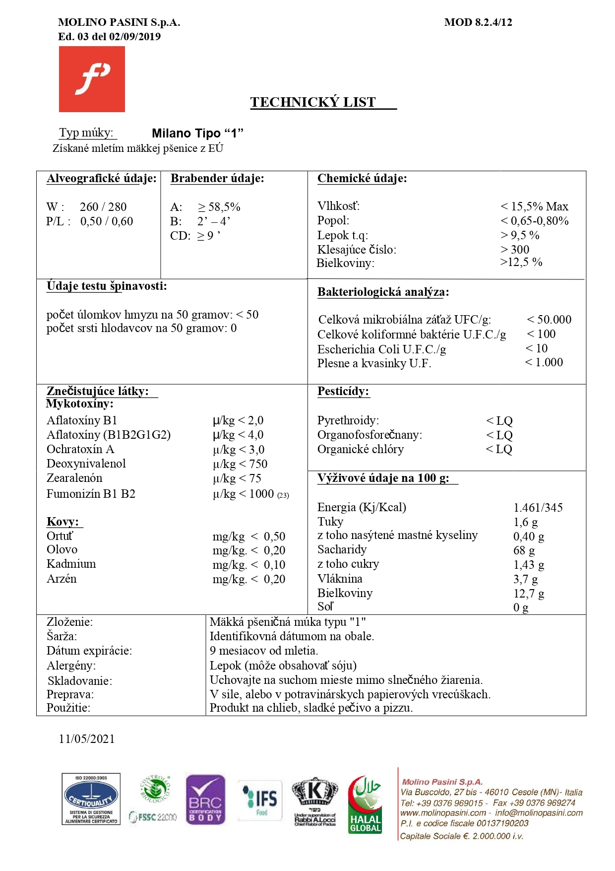 Talianska múka MILANO od MOLINO PASINI je mäkká pšeničná múka typu „1“. Získaná z najlepších obilnín, táto múka je garantovaná bez GMO a je spracovaná s dôrazom na zachovanie nutričných hodnôt. Ideálna pre rôzne druhy pečiva, od chrumkavých bagiet po nadýchané croissanty. Táto múka je perfektným spoločníkom v kuchyni, či už pripravujete domáce cestoviny, pizzu alebo dezerty.