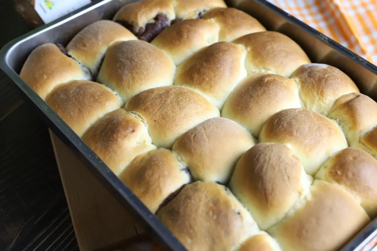 Vykysnuté cesto rozdelíme na rovnaké kúsky, každý roztiahneme v dlani, naplníme Nutellou a dobre uzavrieme do tvaru buchty. Ukladáme ich tesne vedľa seba do vymasteného pekáča, zvrchu potrieme maslom a necháme ešte 15–20 minút podkysnúť.