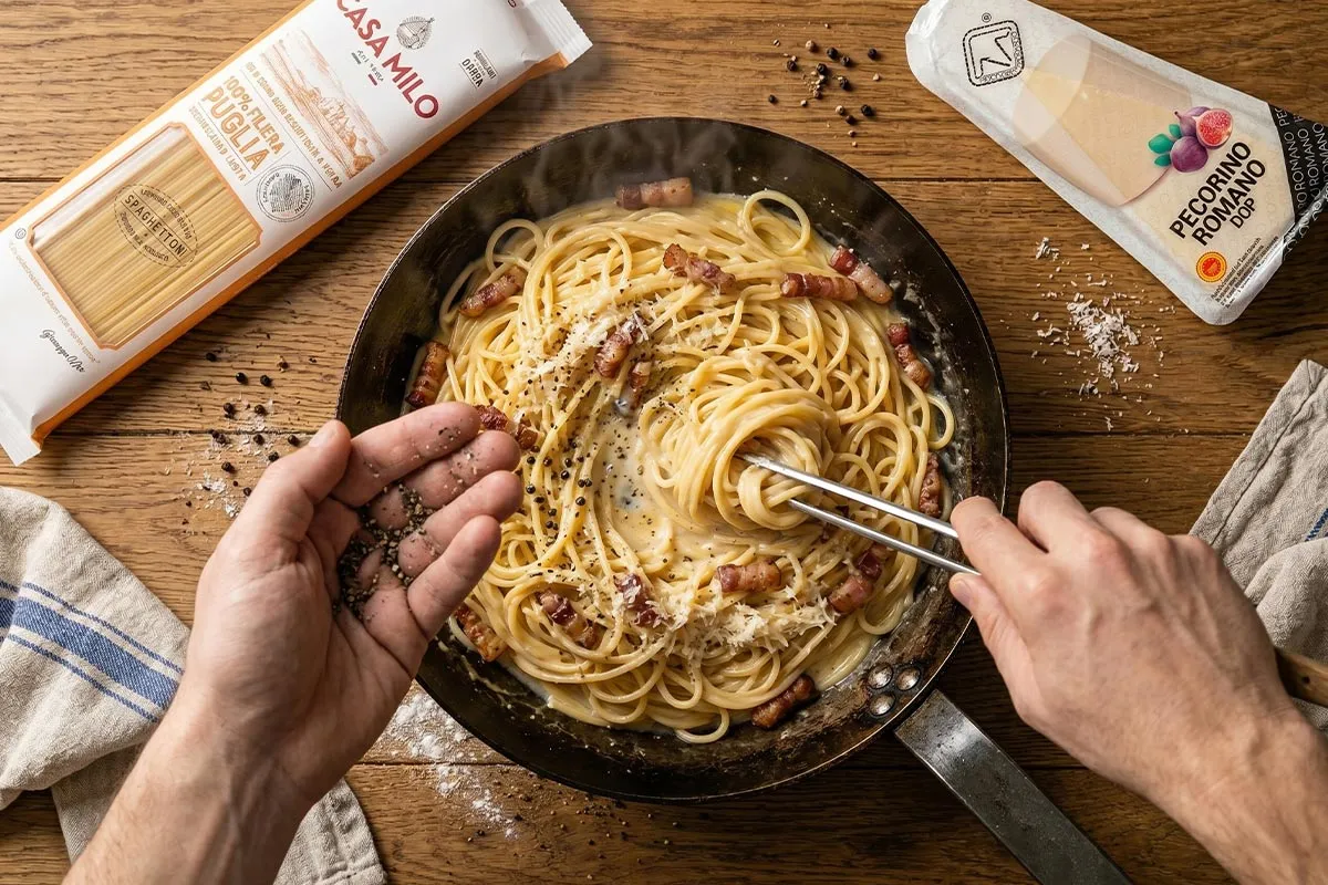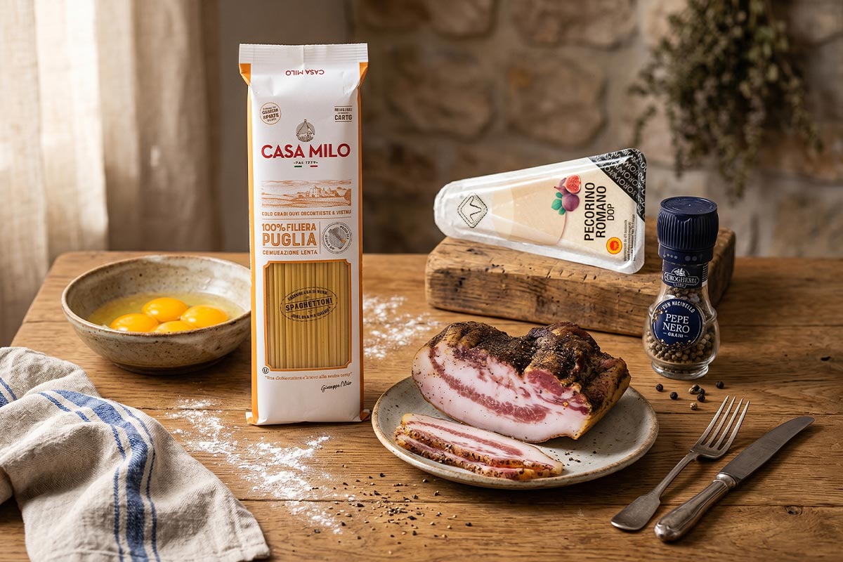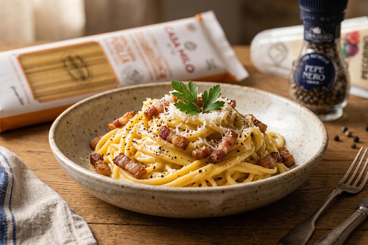 Tento recept na Carbonaru je navrhnutý tak, aby rešpektoval historickú techniku rímskych majstrov. Tajomstvo spočíva v emulzii škrobovej vody, žĺtkov a tuku, čím vzniká legendárna krémovosť bez použitia smotany.