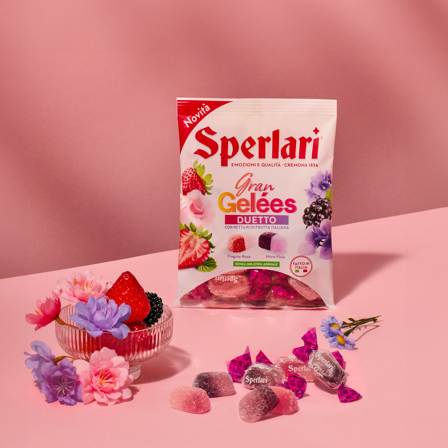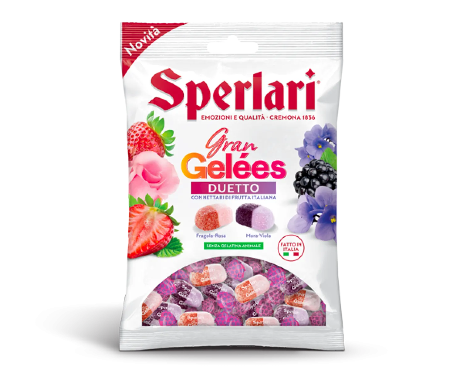 Sperlari želé s jahodovo-ružovou a černicovo-fialovou príchuťou sú ideálne ako sladké potešenie počas dňa, na zdieľanie s blízkymi či ako farebný doplnok k talianskemu popoludňajšiemu čaju. Prinášajú do každého okamihu jemnosť, hravosť a neodolateľnú taliansku sladkosť, ktorá nikdy neomrzí.