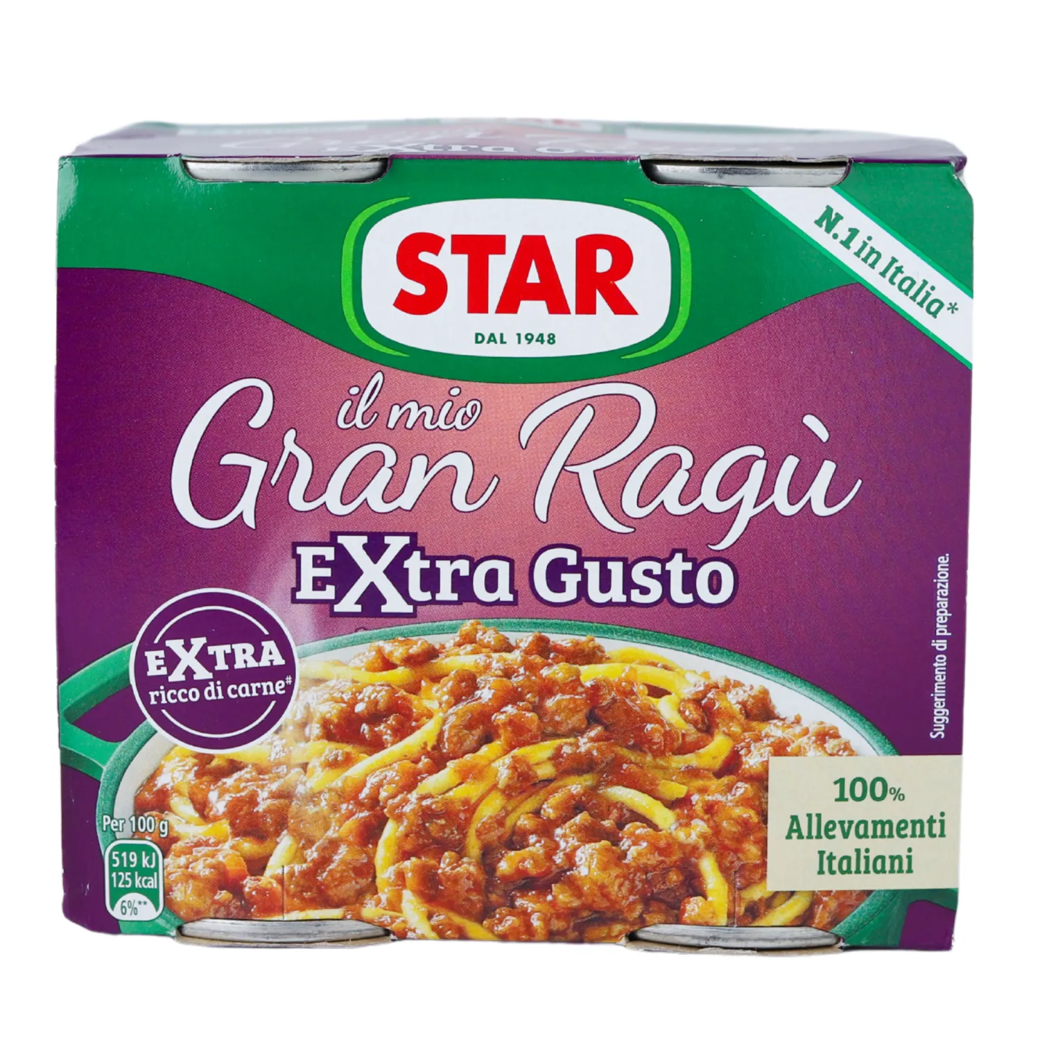 Predstavte svojim chuťovým pohárikom autentickú a lahodnú chuť Star Gran Ragú Extra Gusto. Táto prémiová mäsová omáčka je vyrobená zo zmesi vysokokvalitného hovädzieho, bravčového mäsa a aromatických bylín a korenín, pomaly varených k dokonalosti. To, čo odlišuje toto ragú, je extra dotyk vysokokvalitných ingrediencií, ktoré mu dodávajú extra výbuch chuti.