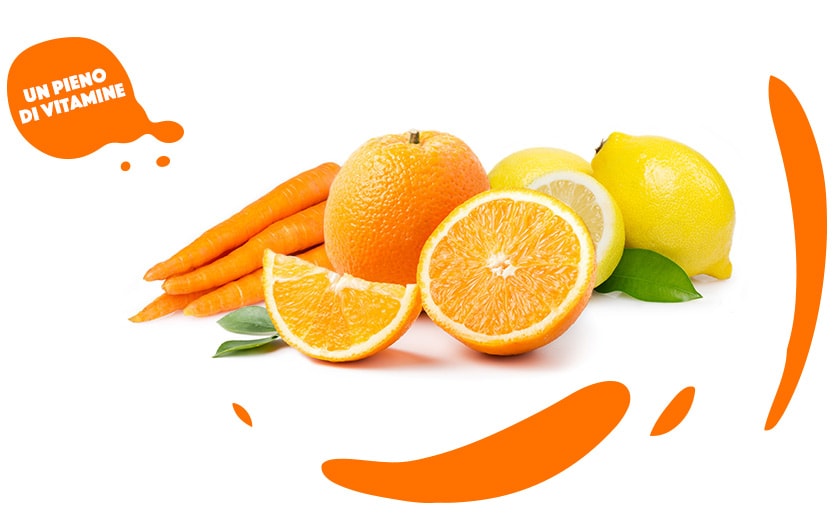 Zloženie: voda, koncentrované šťavy (pomaranč 20%, mrkva 5%, citrón 5%) cukor, prírodné arómy, vitamín C, E a beta karotén. Bez lepku.