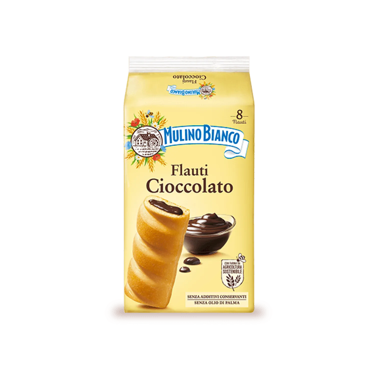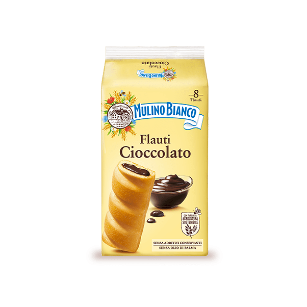 Produkty Mulino Bianco sú vyrábané bez umelých prísad, farbív a konzervantov, čím si zachovávajú svoju prirodzenú chuť a vysokú kvalitu. Práve preto majú kratší dátum minimálnej trvanlivosti v porovnaní s inými sušienkami či podobnými produktmi, čo je dôkazom ich autenticity a čerstvosti. Flauti al Cioccolato od Mulino Bianco sa rodia zo stretnutia jemného prirodzene kysnutého cesta s lahodným čokoládovým krémom. Materské droždie dodáva cestu jedinečnú a nezameniteľnú chuť a vďaka pomalému kysnutiu je mäkké a vláčne. Flauti sú vyrábané iba z najkvalitnejších talianskych surovín a bez použitia konzervačných látok, umelých farbív, palmového oleja, hydrogénových tukov a umelých sladidiel. Odporúčame vám ich vyskúšať napríklad s pohárom mlieka alebo s dobrou kávou. Doprajte si sladké potešenie vyrobené priamo v Taliansku kedykoľvek počas dňa a zlepšite si ním náladu vždy, keď sa vám bude chcieť.