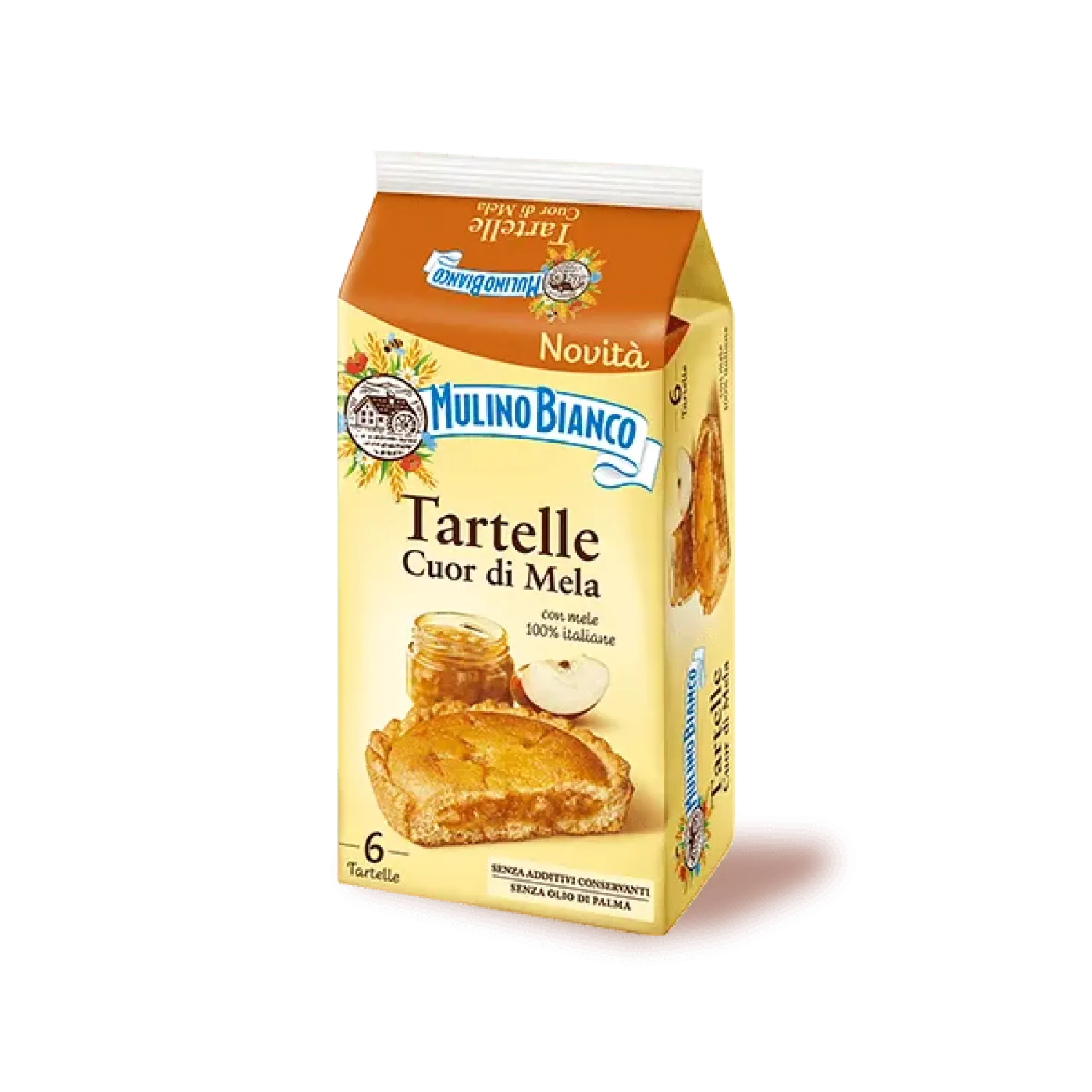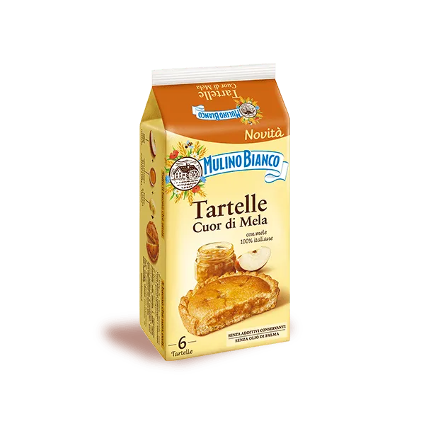 Produkty Mulino Bianco sú vyrábané bez umelých prísad, farbív a konzervantov, čím si zachovávajú svoju prirodzenú chuť a vysokú kvalitu. Práve preto majú kratší dátum minimálnej trvanlivosti v porovnaní s inými sušienkami či podobnými produktmi, čo je dôkazom ich autenticity a čerstvosti. Tartelle Cuor di Melle od Mulino Bianco sú chutné plnené tartaletky jablkovým pyré, vyrobené z čerstvých vajec a 100% talianskych jabĺk s jedinečnou arómou. Tartaletky sú  vyrábané iba z najkvalitnejších talianskych surovín bez použitia konzervačných látok a palmového oleja.