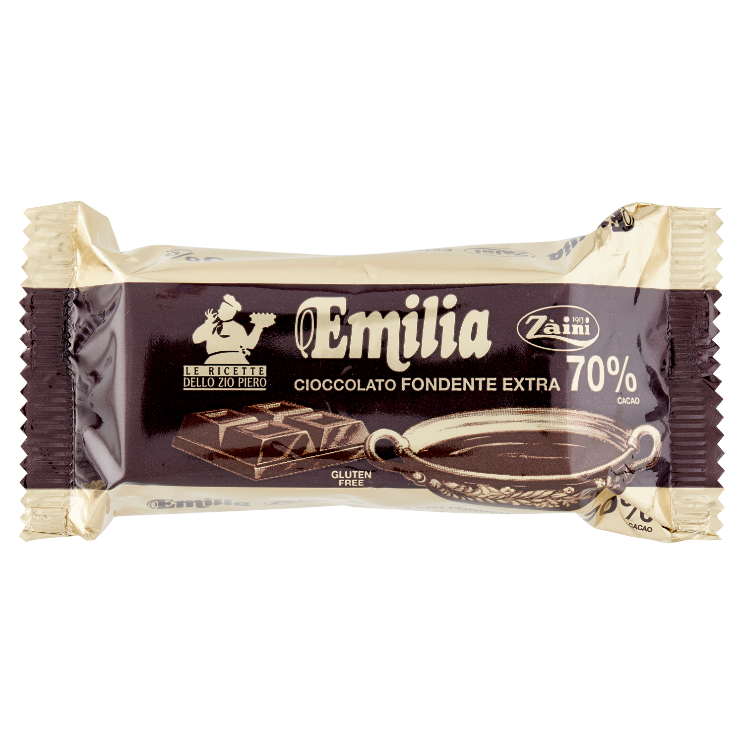 Dovoľte nám, aby sme Vás uviedli do sveta lahodnej čokolády, ktorá je naozaj talianska. Emilia, tmavá čokoláda s extra 70% kakaa, je výnimočná svojou hĺbkou chuti a zamatovou textúrou. Nie, nie je to len obyčajná čokoláda, je to Emilia - tmavá čokoláda, ktorá sa vyrába už viac ako sto rokov podľa starostlivo strážených receptúr.